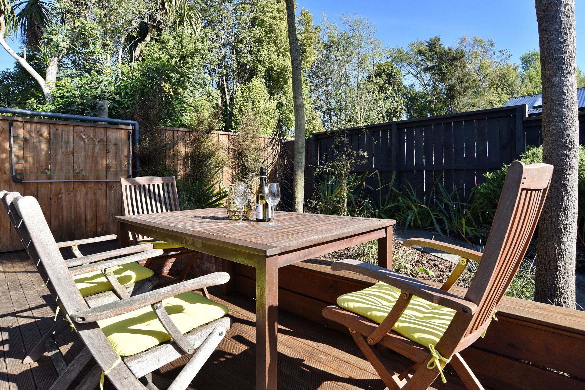 - Sunny deck and private fenced courtyard with native planting