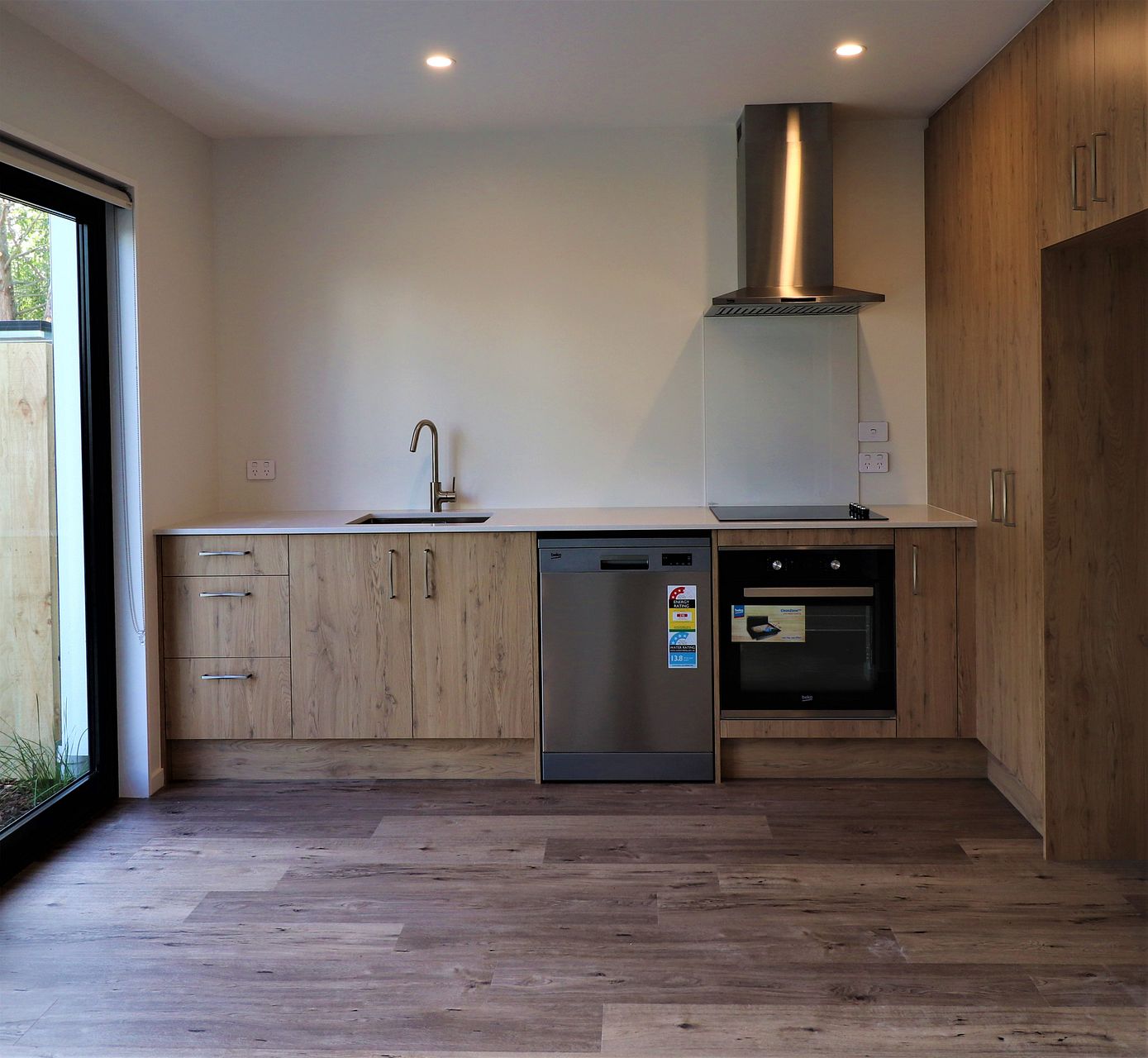 Downstairs, there is a good sized living area and well appointed kitchen with a dish washer.