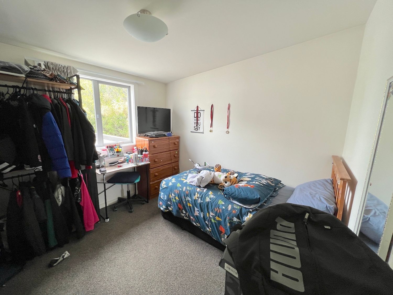 There are three bedrooms, all bedrooms are decent-sized. Open plan living has air conditioner. Bathroom and toilet are combined.