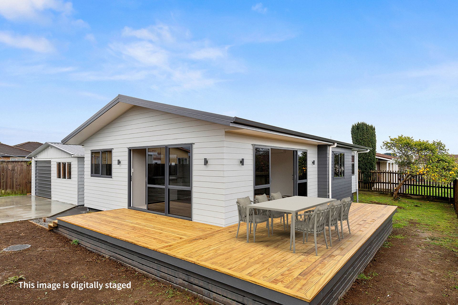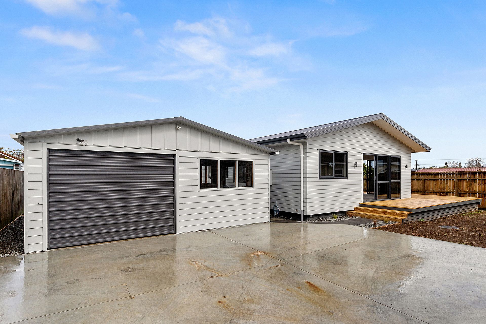 Brand new home recently completed and ready to be moved in to. Three bedrooms, bathroom with toilet, additional separate toilet. Open plan kitchen, dining and living room. Heat pump, double glazed and fully insulated (complies with the Healthy Homes Standard). Large wrap around deck. Large garage with one garage door but plenty of space for storage, a workshop, or even a home exercise area. There is additional off road parking space outside the garage.