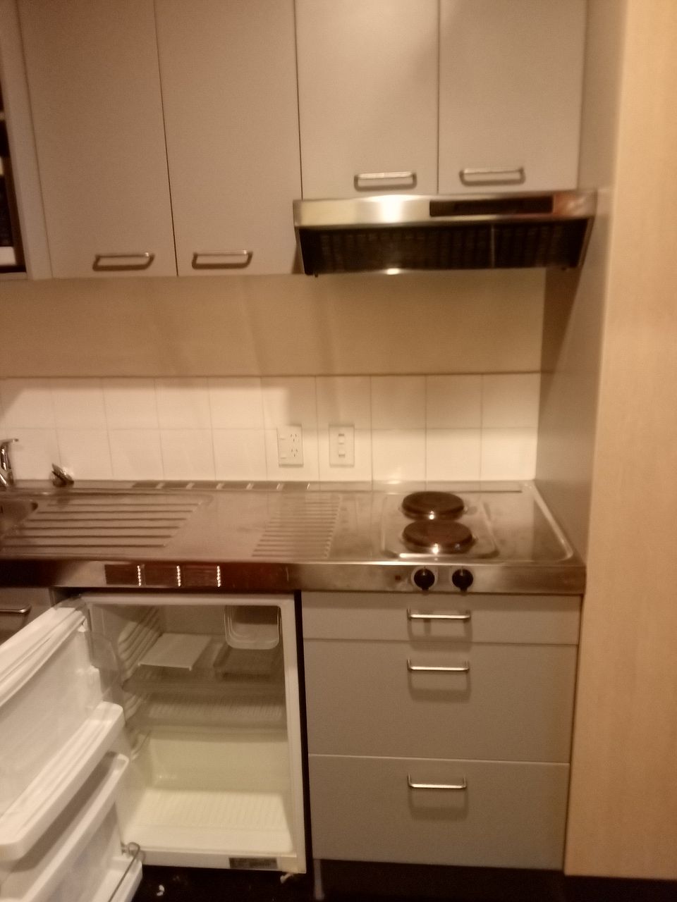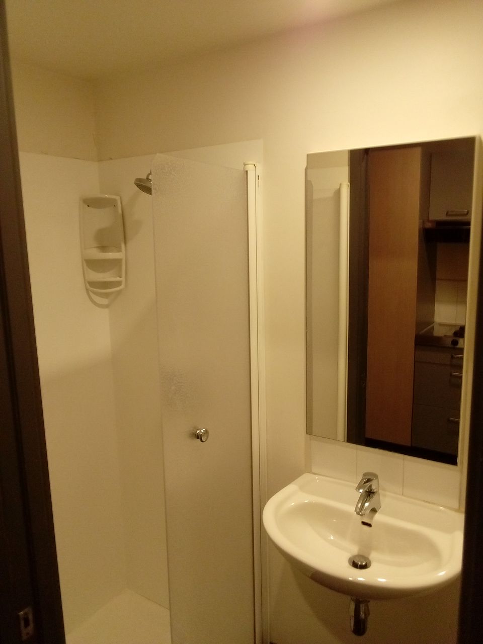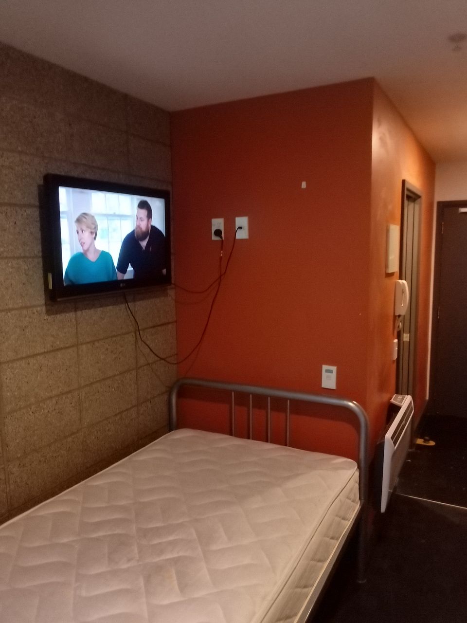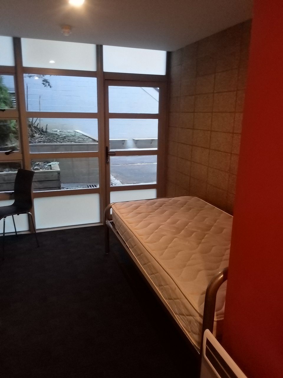 Fully furnished studio with bed, desk, tv, heater, fridge, kitchen, bathroom with shower. Bottom floor with door access to courtyard. Quiet building with mainly students.