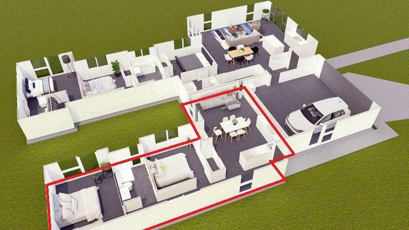 π Private open-plan living area with seamless flow to the backyard