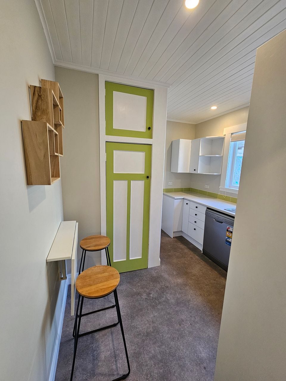 In 2019 the bathroom and kitchen were replaced, the interior repainted and new vinyl, curtains, and lighting installed. Kitchen has a rangehood, dishwasher and a handy fold-out table with seating. Bathroom includes a laundry tub, heater, extractor fan and a heated towel rack on a cost-effective timer. North facing living room has a heatpump.