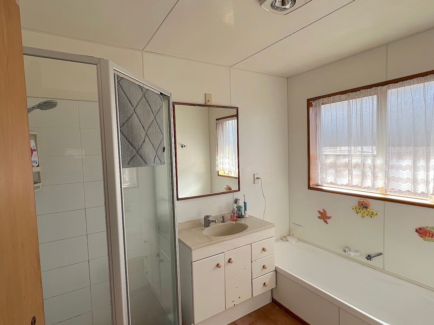 There are three bedrooms, the master bedroom has ensuite. The main bathroom has a separate bath and shower.