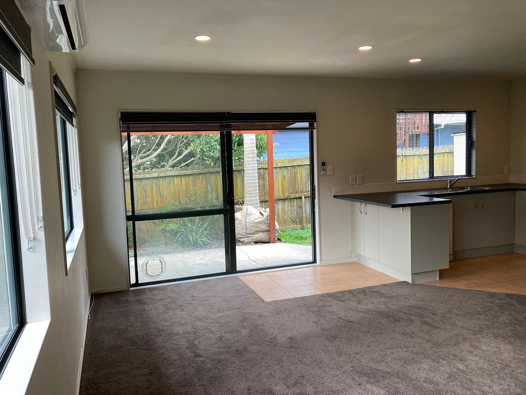 The ranch slider the a the front has also got a covered in area as well now and the carpet is only about a year old
