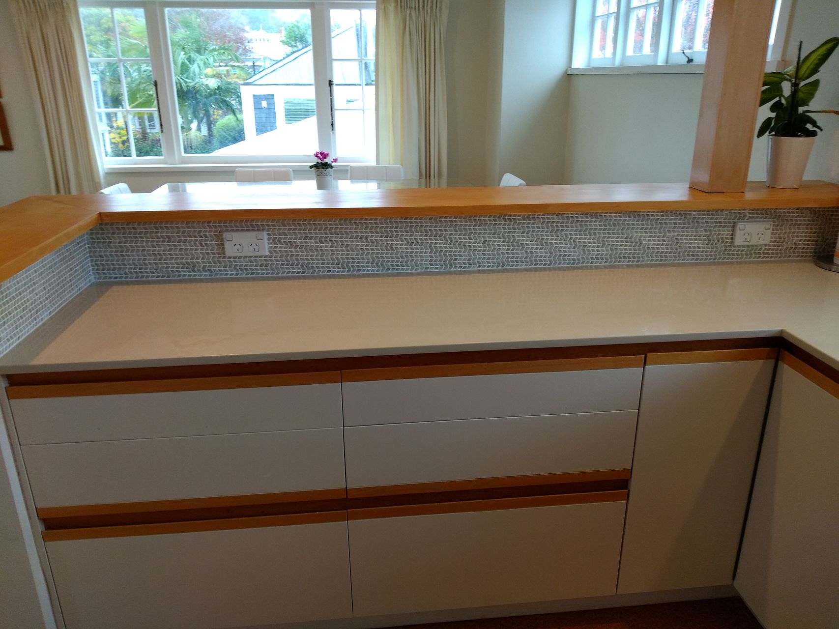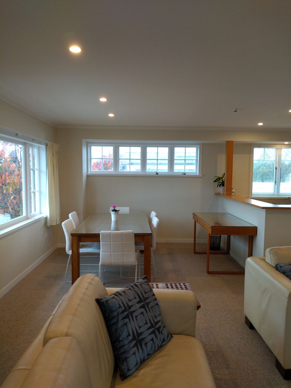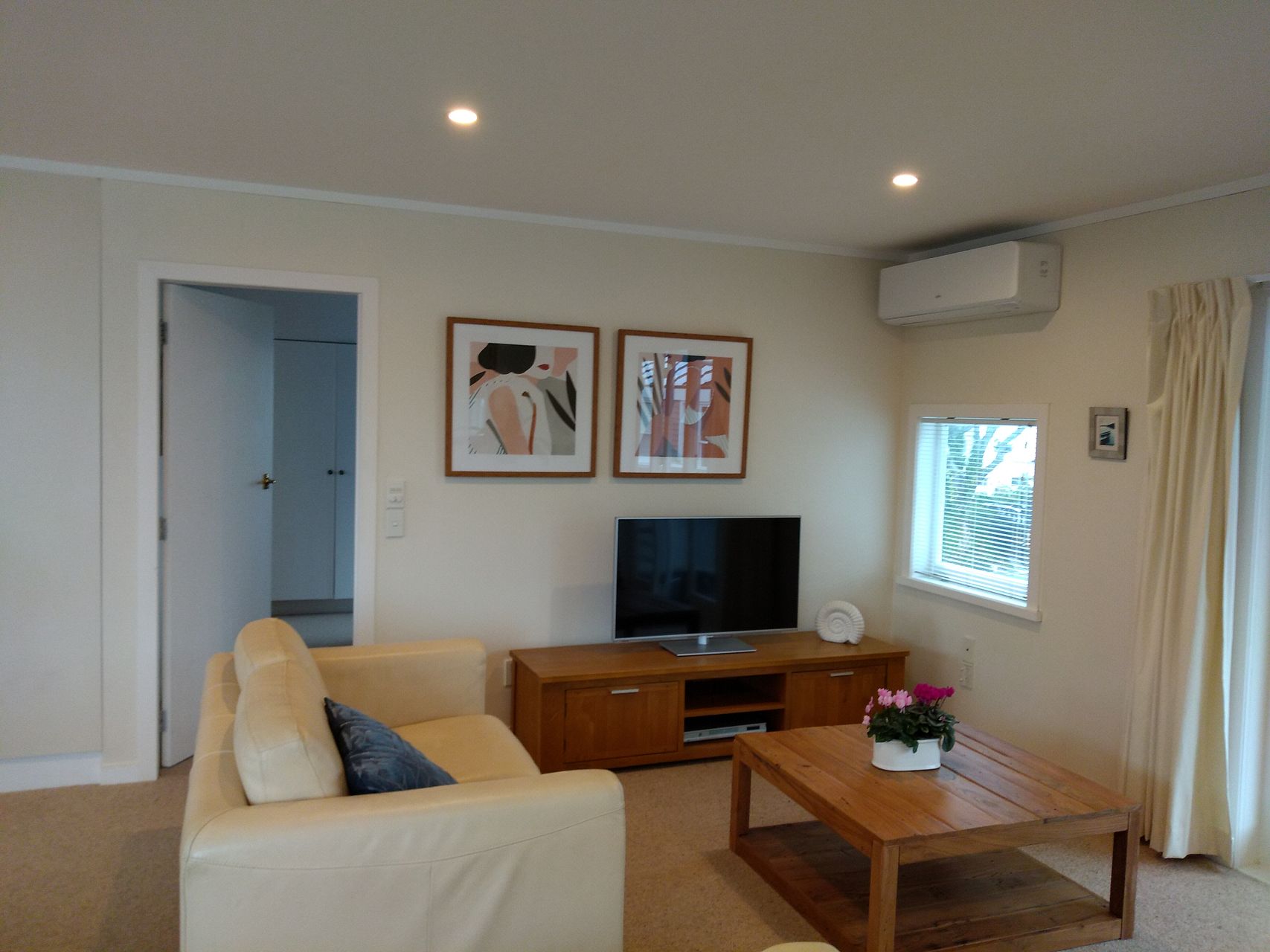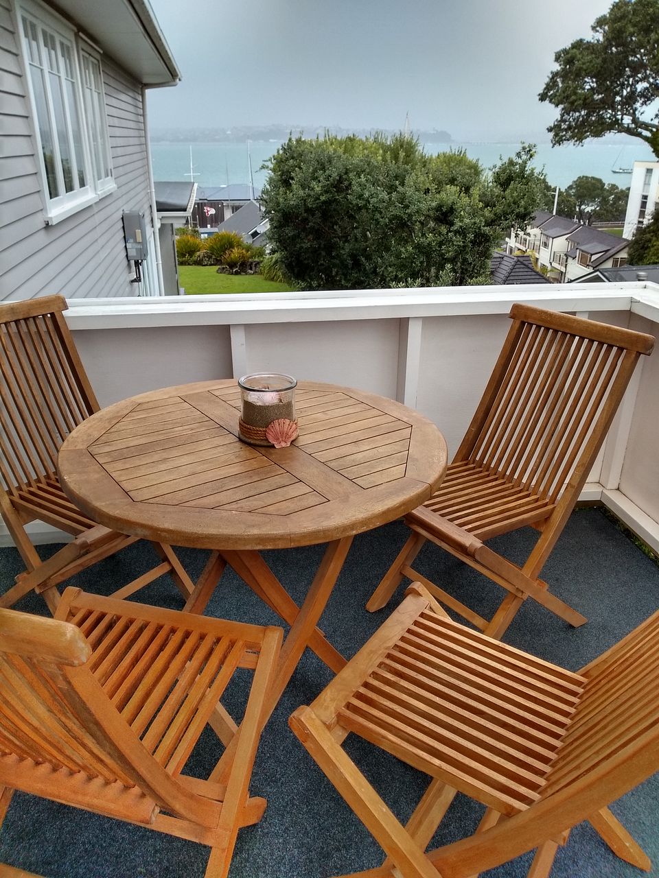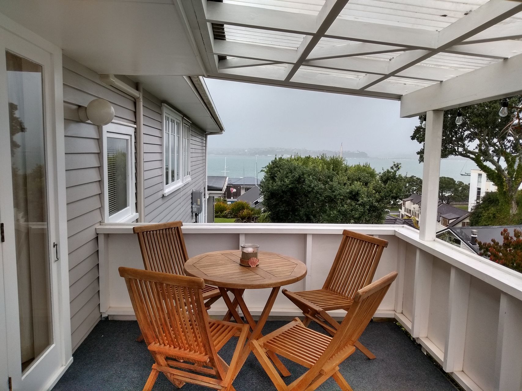 Sea views from the covered balcony area. North facing living room with all day sun.