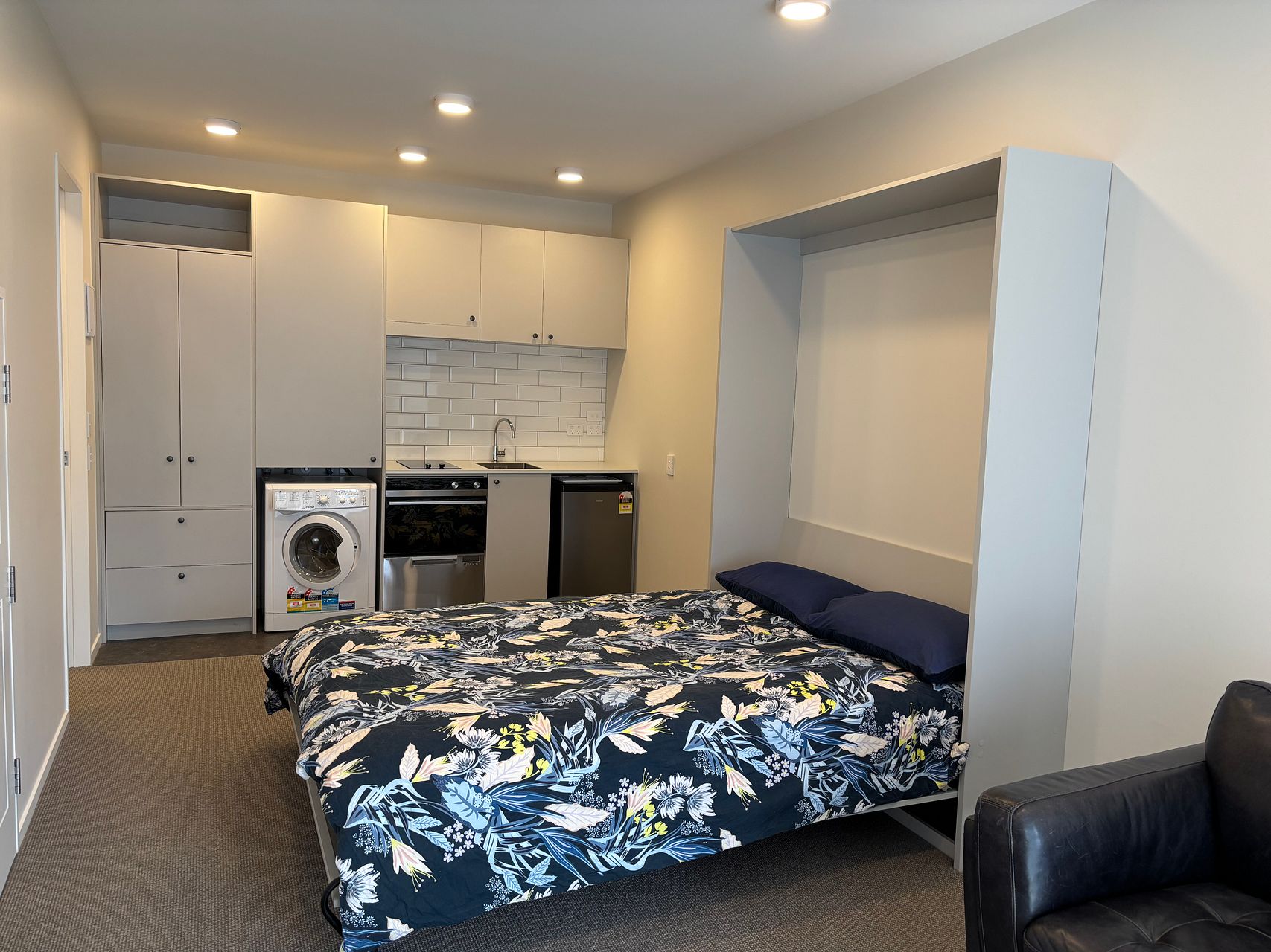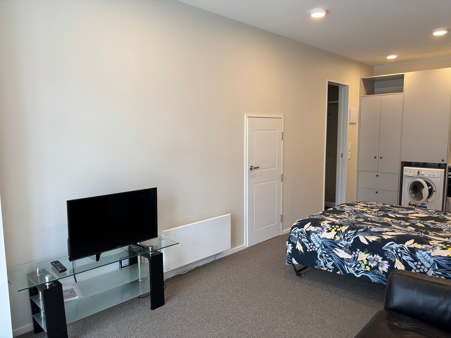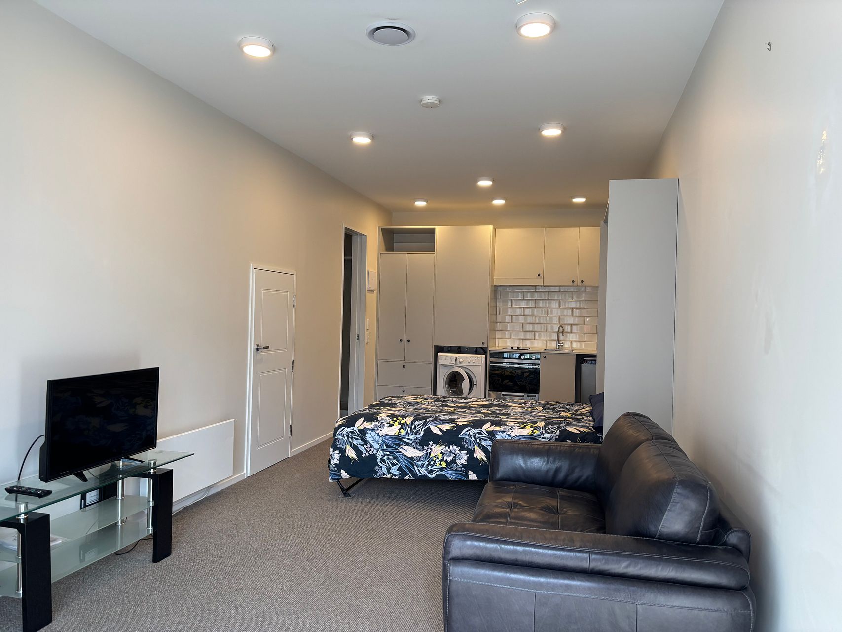 Near new spacious studio in great Newtown location, close to public transport, Wellington hospital, supermarket and all that Newtown has to offer. Furnished with queen sized bed, washing machine and dryer, fridge, dishwasher, oven, couch and TV. It’s well insulated with wall mounted heating in case you need it. Plenty of natural light and is within secured complex.