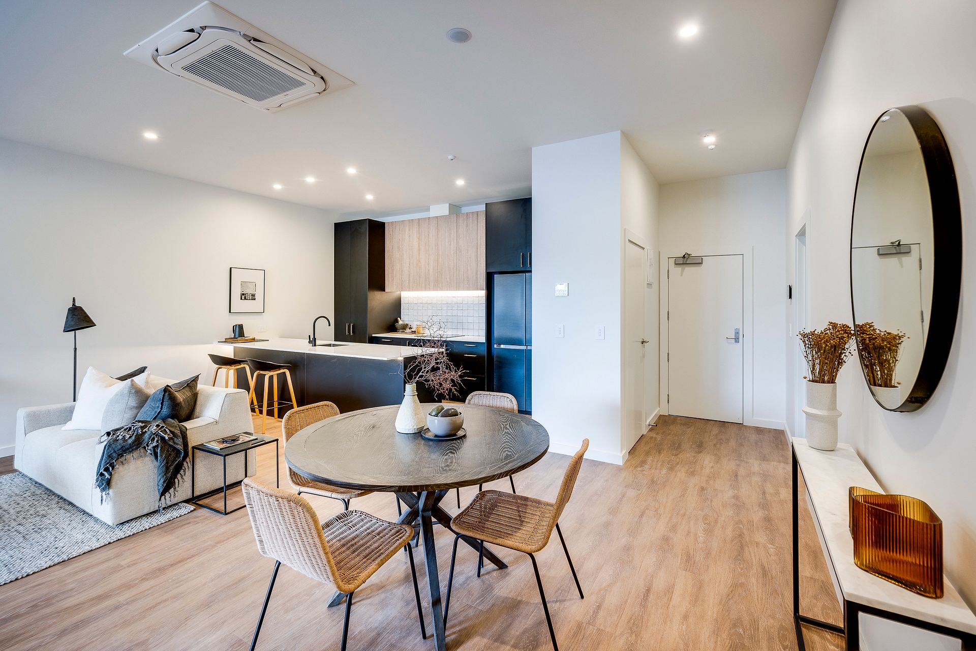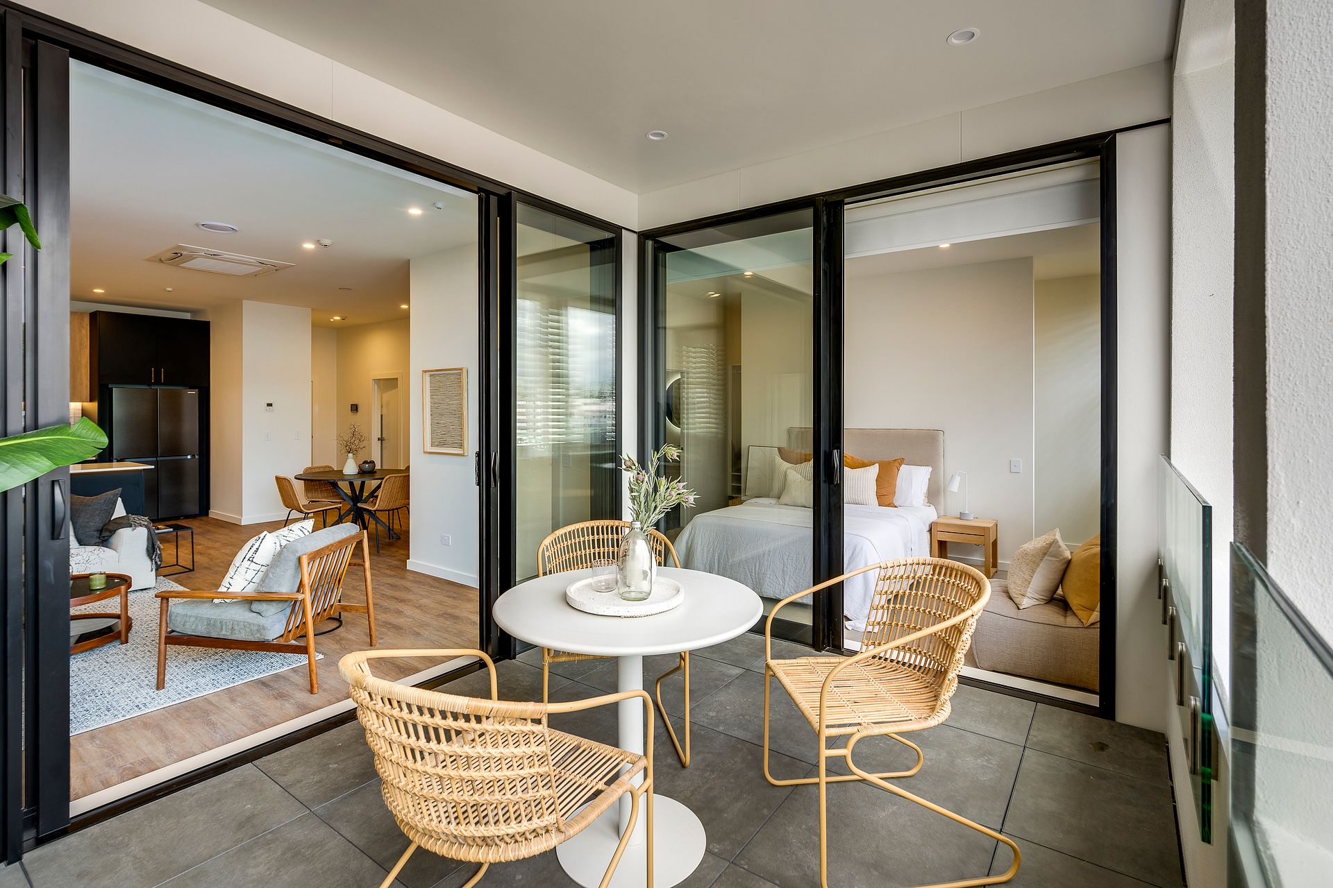 New development comprising Six new apartments finished to a high specification with fully tiled bathrooms and fully fitted kitchen. Each apartment has a generous deck providing an outside covered living area. Living rooms and bedrooms have individual AC units. Bosch appliances include induction cooktop and pyrolytic oven, washing machine and dryer. Double door Samsung fridge freezer. New fully sealed, flood lit car park to the rear with bike storage.