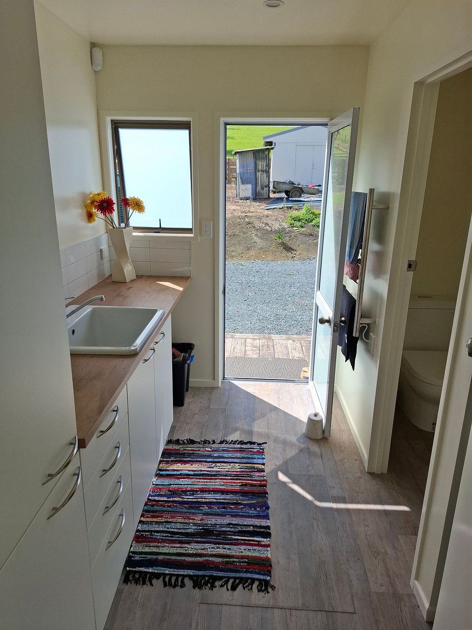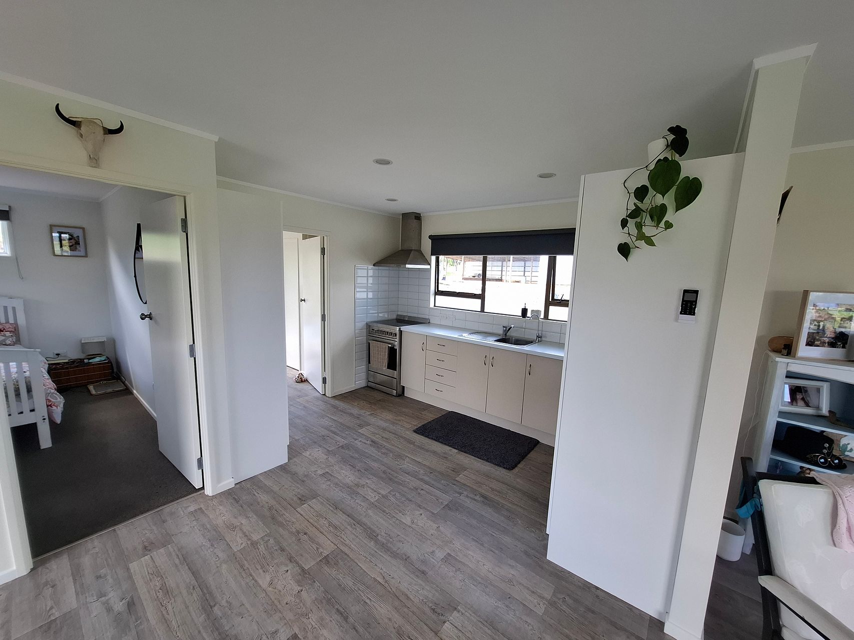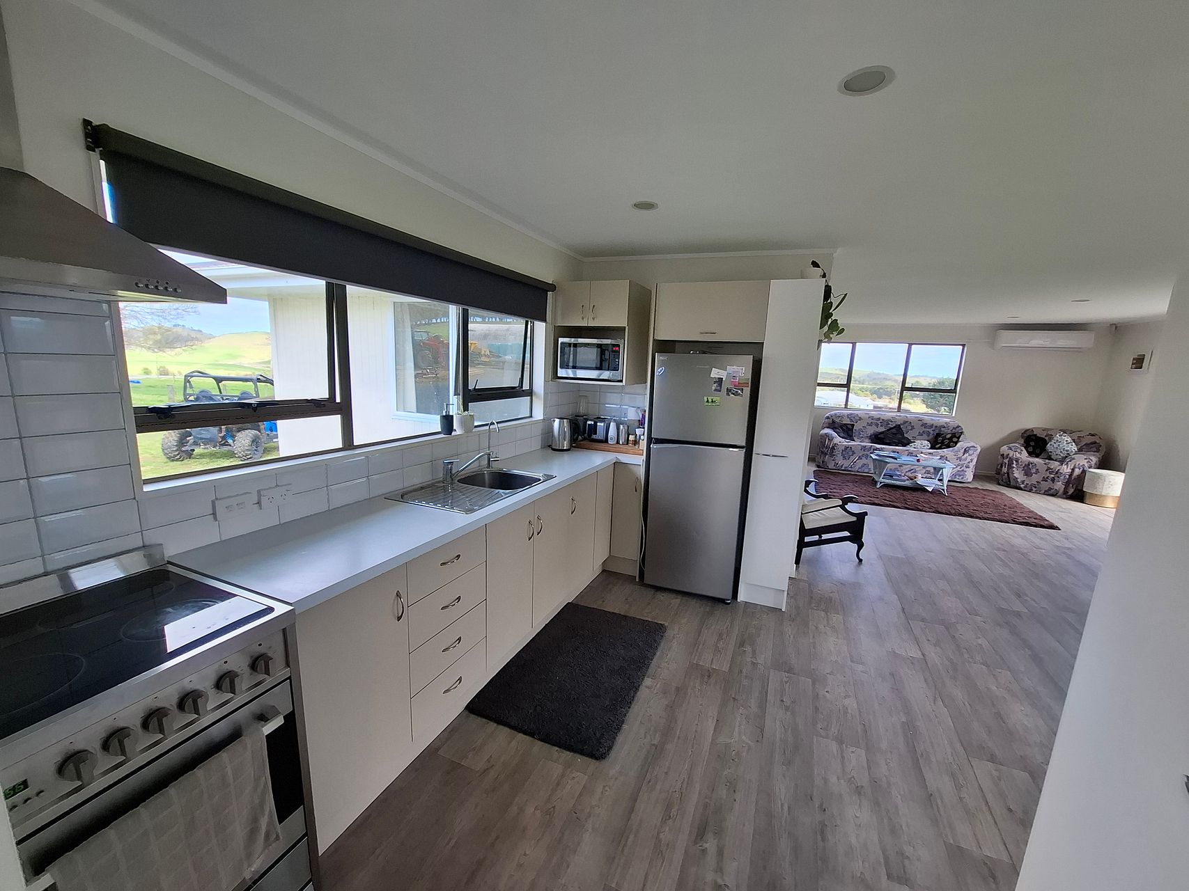 Lino throughout living areas and carpet in bedrooms. Gas oven and heating, water tanks, heat pump. Lots of parking for a boat or similar. No garage or shed storage.