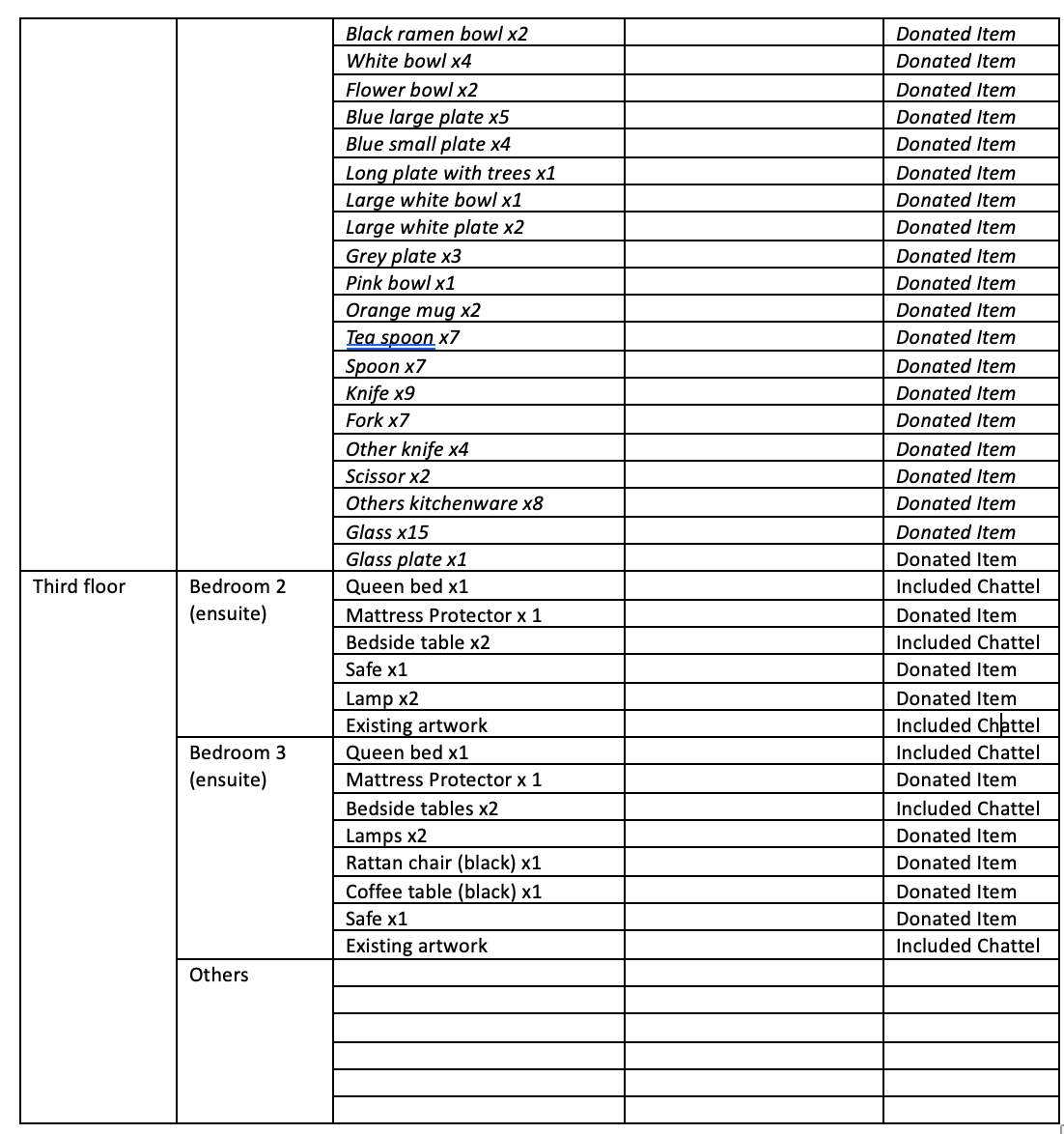 Some of the furniture shown in the photos is included, while others are not. Please refer to the chattels list in the photo gallery in this ad for details. The exact inclusions can be confirmed during the on-site viewing.