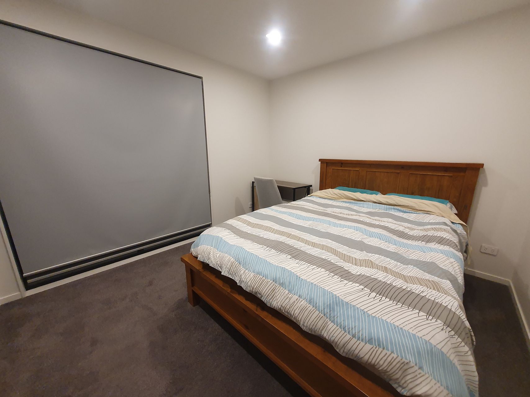 A single sunny ensuite room is avaliable in a three bedroom townhome. Room is furnished with a queen size bed, table and chair. Has a shared kitchen and living area.