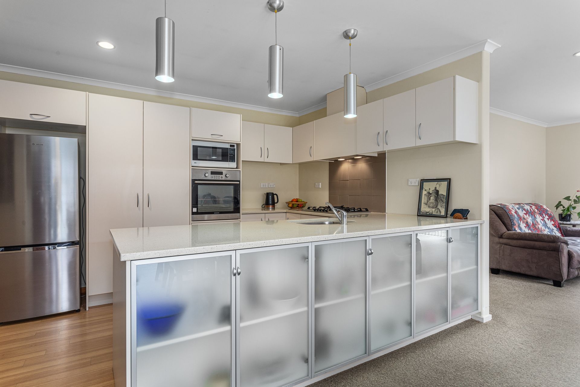 Each bedroom comes equipped with built-in wardrobes, ensuring ample storage space. The home features a modern kitchen with gas cooking facilities, providing an excellent culinary experience.