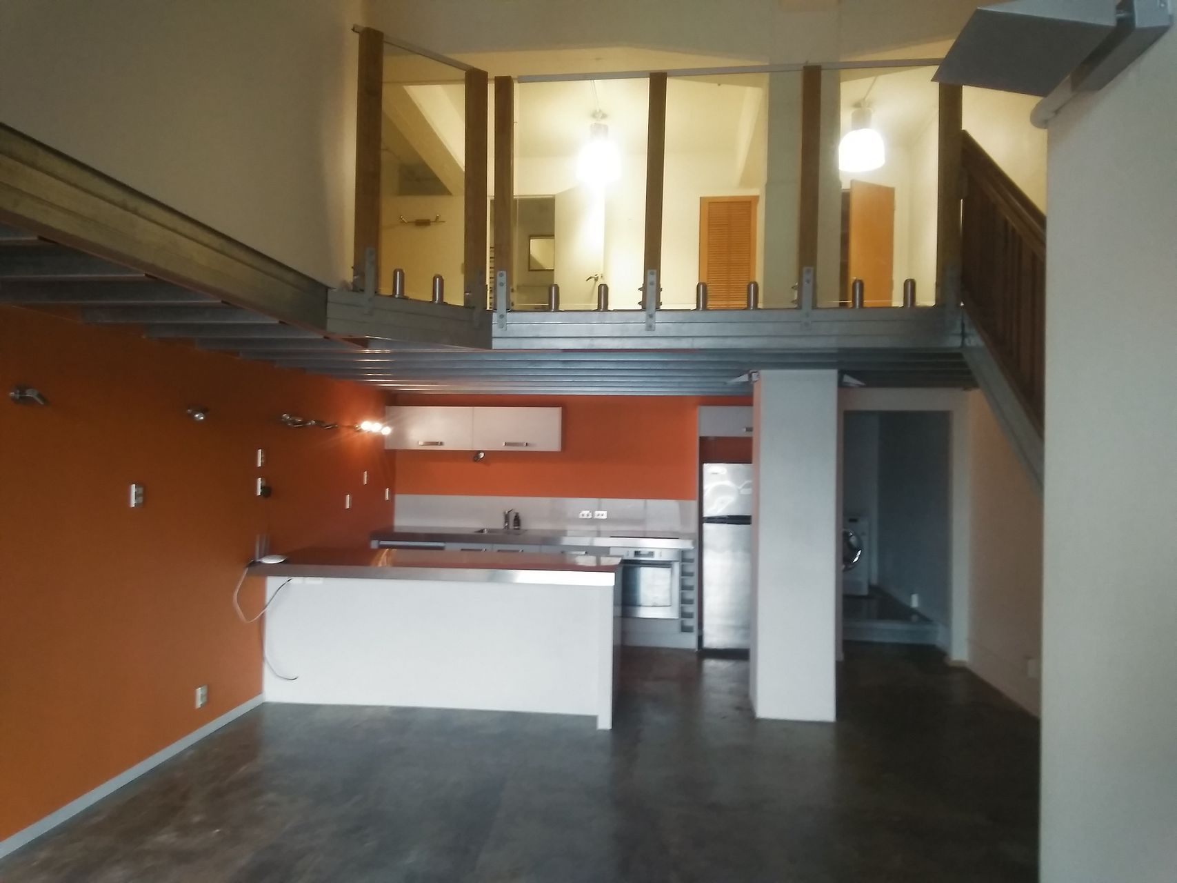 Split level refurbished apartment. Open plan downstairs with modern kitchen overlooking living area. Includes dining area, lounge space & open laundry room. Stairs to upper level open plan mezzanine area with Bedroom & access to modern bathroom. Built in robes.