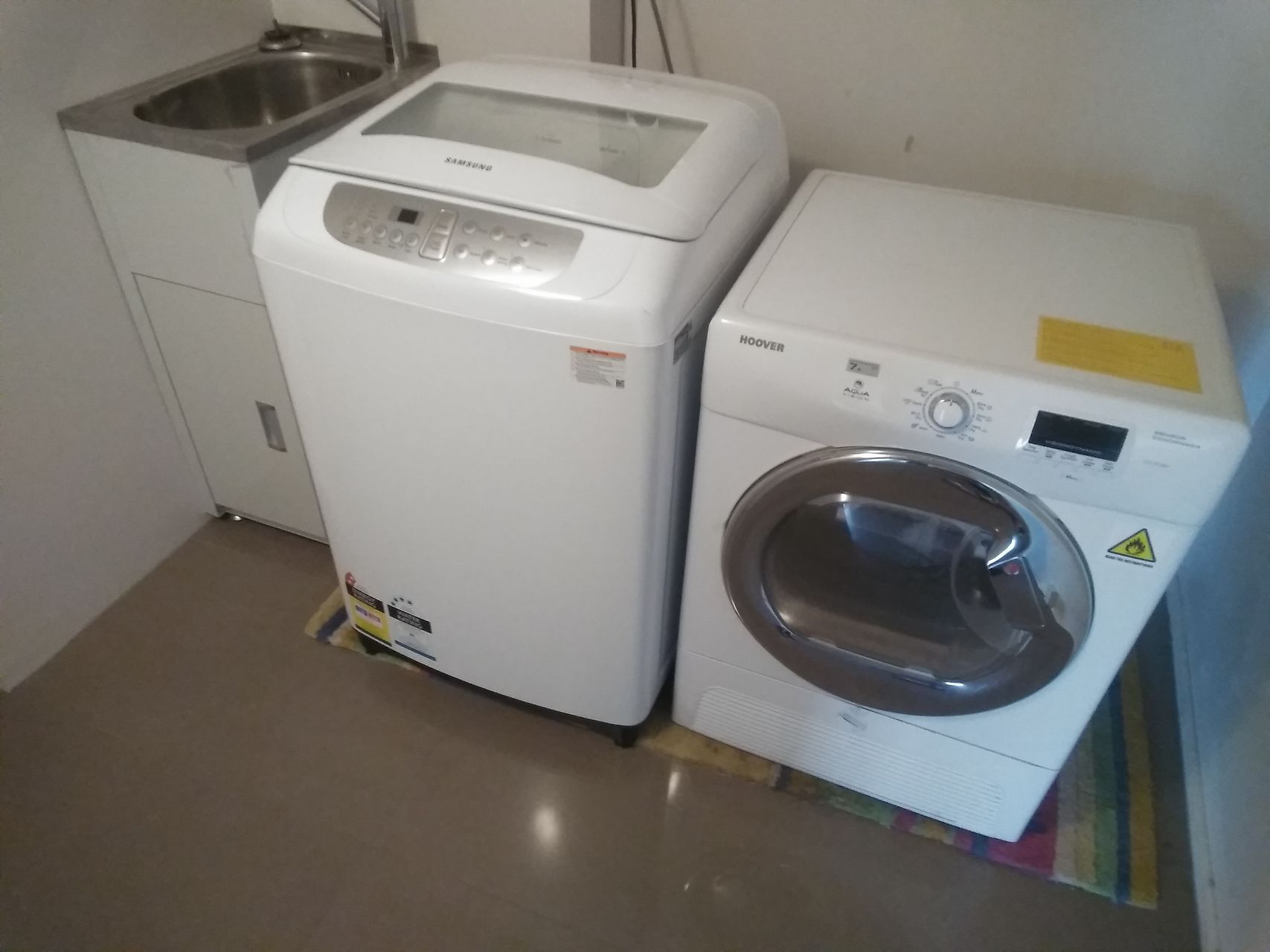 Laundry includes washing machine & "condensor" dryer.