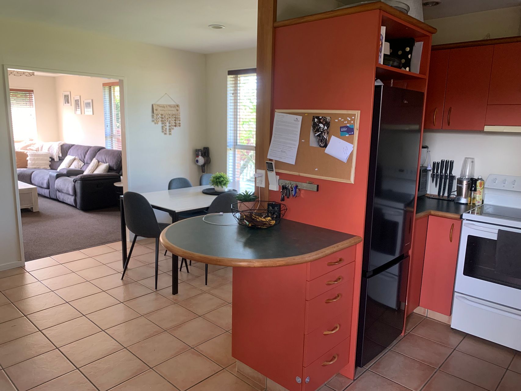Semi open plan kitchen and living area with a heat pump and an HRV system.