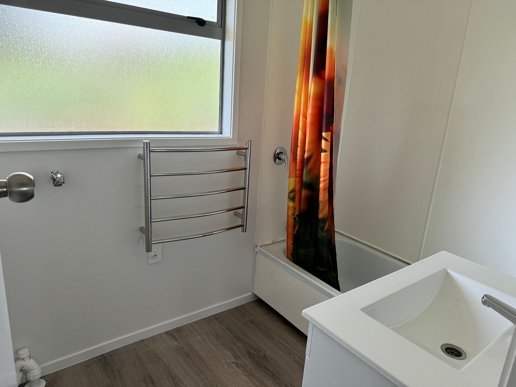 Separate (new) toilet and bathroom (New bathroom vanity and heated towel, rail).