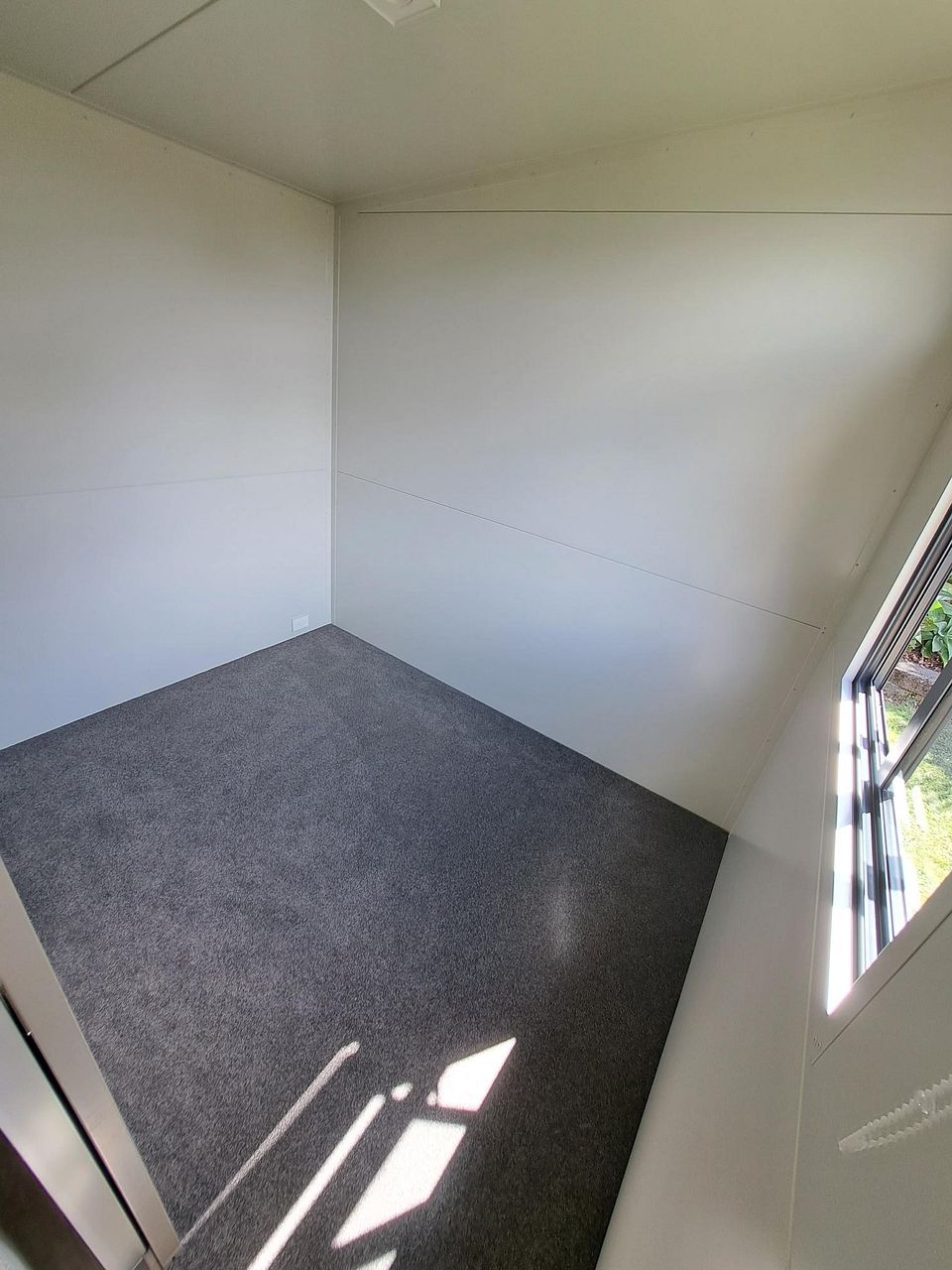 This tiny home is unfurnished and storage space is limited.