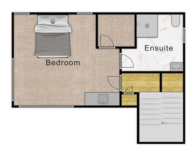 1 Bed Studio with kitchenette (on the second floor).