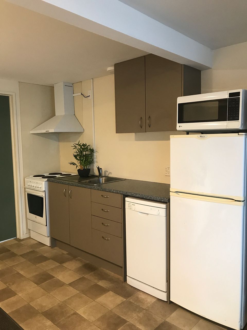 Dishwasher, microwave, oven, fridge/freezer, washing machine, dryer