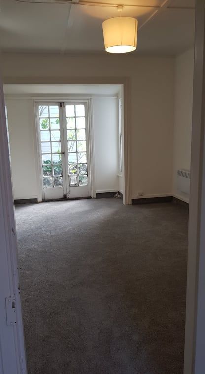 This freshly painted, newly re-carpeted flat has its own cozy garden and off street parking for a couple of cars. Two bedrooms. Available immediately.