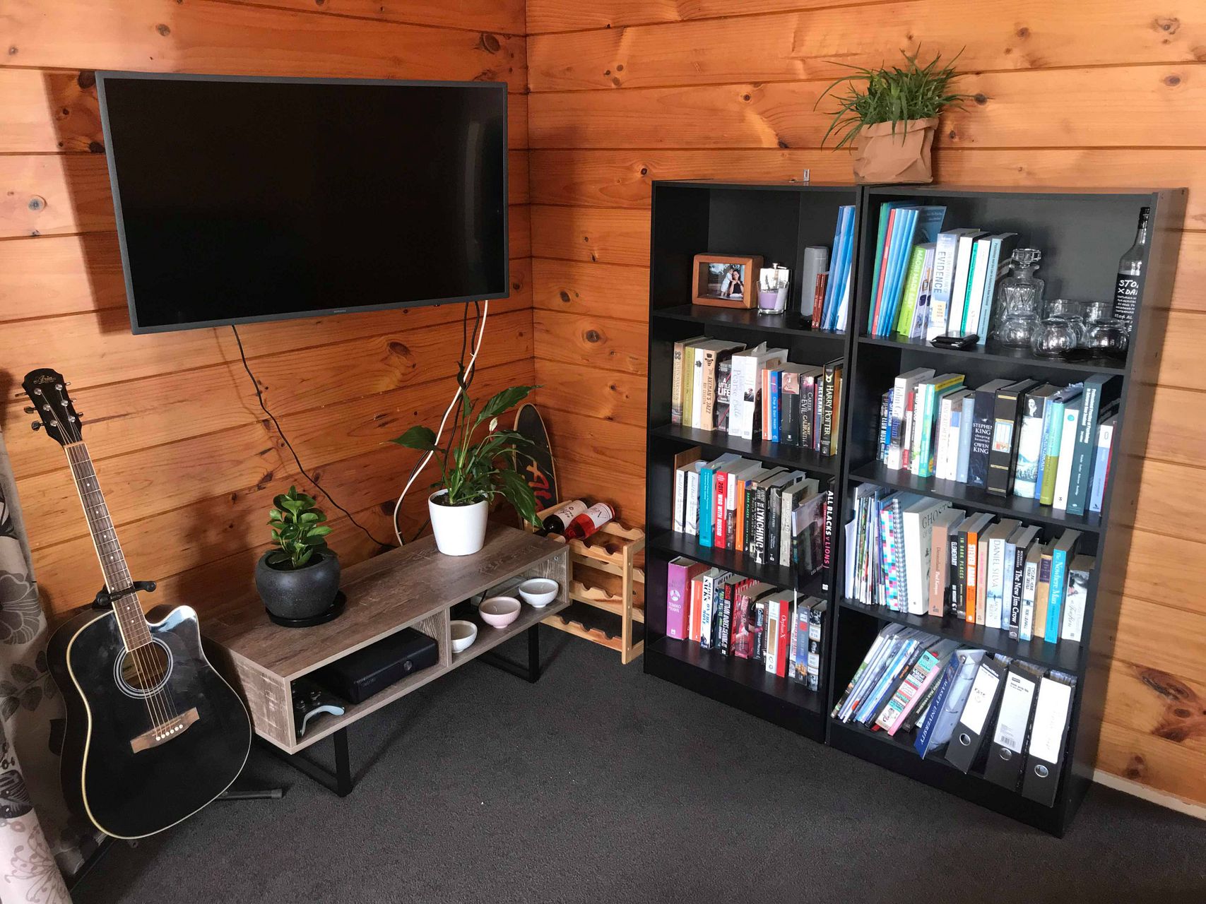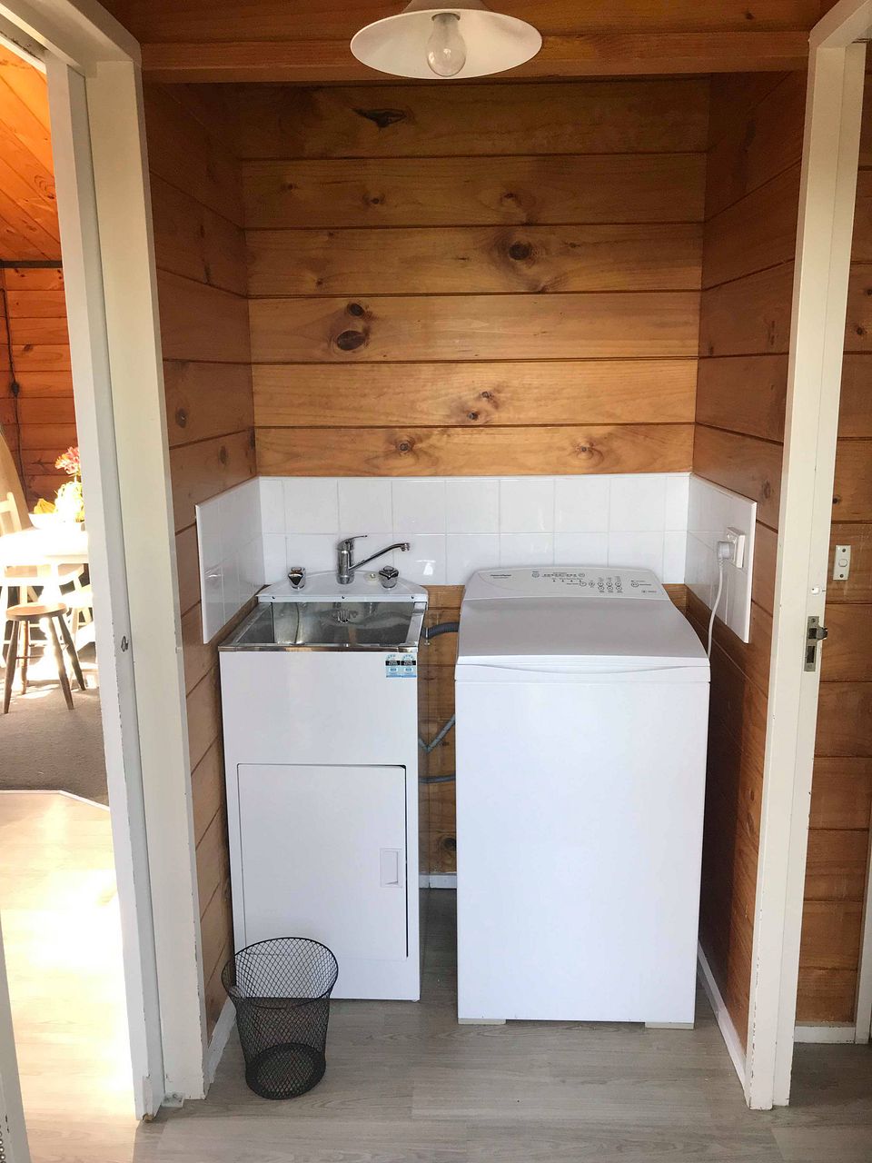 The property has wooden ceilings and walls, carpeted/vinyl flooring, wall mounted panel heater, a covered carport and off-street parking and a garden shed.