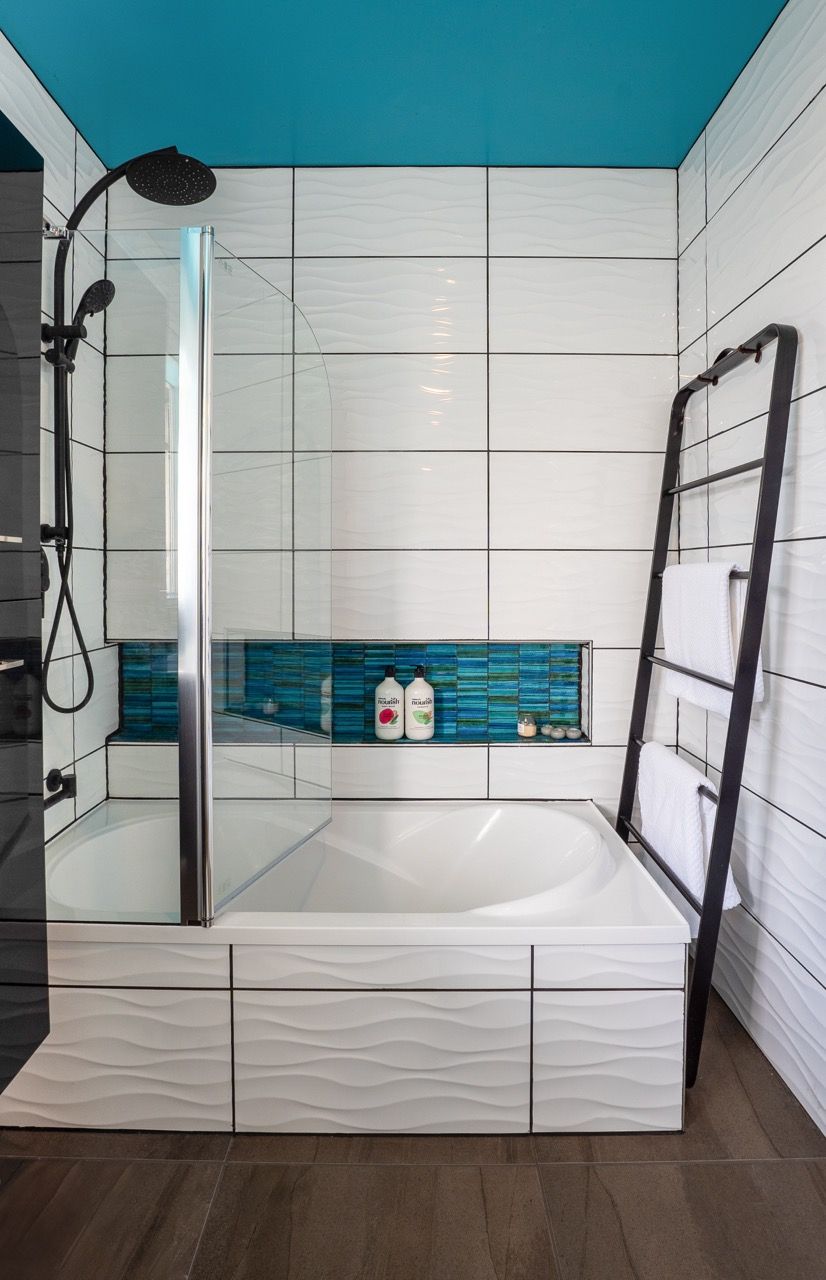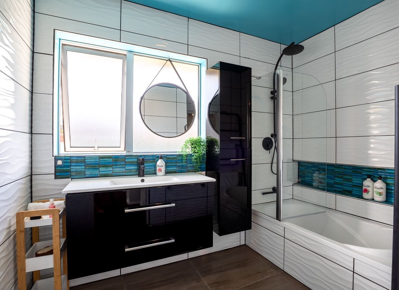 ~ 1 modern bathroom with a full-size bathtub