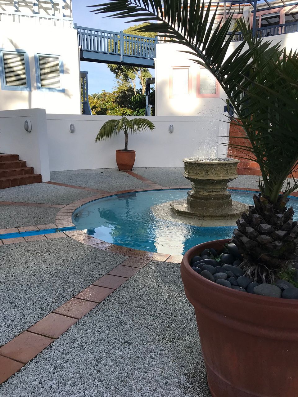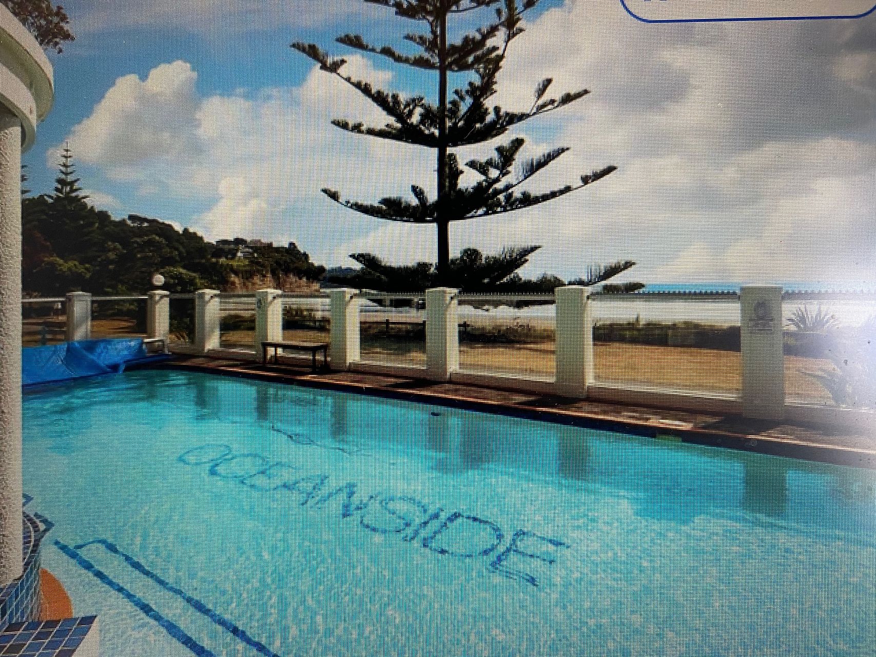 Super-sunny 2 level apartment with sea and reserve views. Block of 2 in a small, secure complex with Mediterranean ambiance and fountains. 20 paces to the beach across the reserve. Pool, spa (for complex residents only.) Safe, secure, quiet, private. Spacious open plan living, new kitchen, deck upstairs. Large queen bedroom, large study/single bedroom, bathroom, deck downstairs. 2 mins drive to town or 10 mins walk along the beach or street. Whiteware (Fridge Washing machine Dryer) included.. Heat pump. Water included. 2 secure car parks.