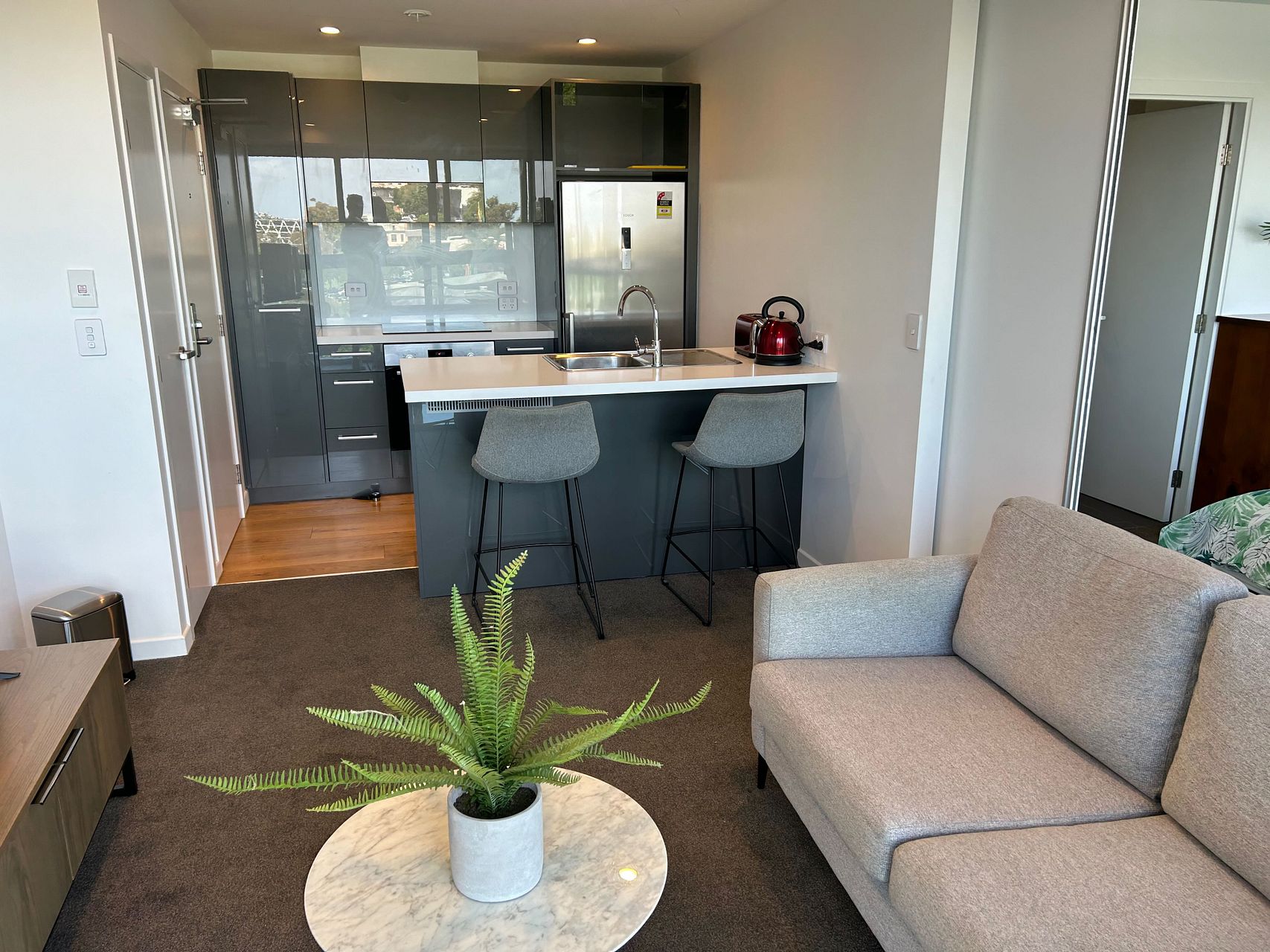 On level two of the recently-built Lakewood Plaza building, this warm comfortable apartment includes just about everything you'd ever need on day one. All lounge and bedroom furniture. Bosch kitchen and laundry appliances. Power, water and fast fibre wifi included in the rent too. Just bring your suitcase and linen. And your gym gear, because one full membership to the gym downstairs is also part of the deal, along with access to the magnificent 20m indoor heated pool.