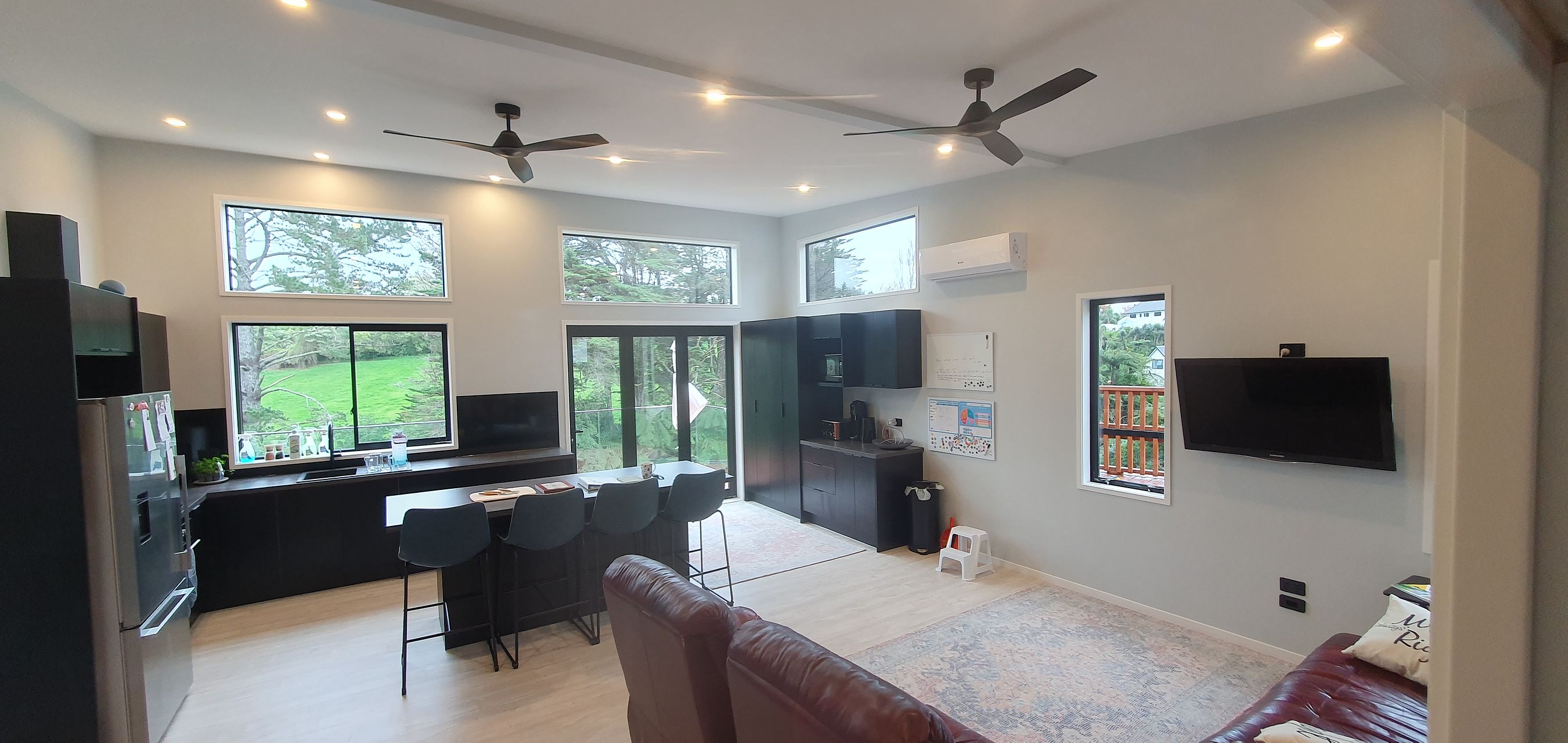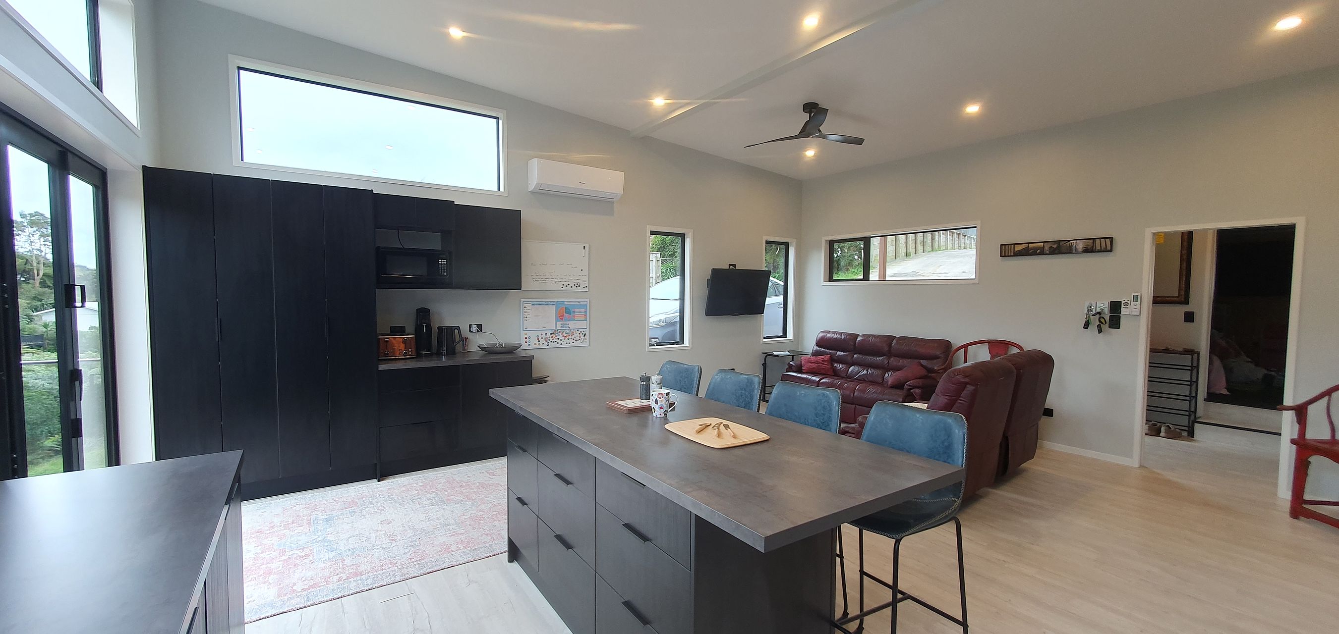 Nestled in the serene locale of Highlands Park, this brand-new 5-bedroom, 3-bathroom residence at 63A Heta Road, New Plymouth offers both luxury and comfort. As a Healthy Homes compliant new build, it ensures your well-being is catered to with features like air conditioning for the warm summer months and efficient heating for cooler days. The open-plan living area extends to a balcony and deck, perfect for alfresco dining or simply soaking in the breathtaking valley views. Contemporary design is evident throughout, with a sleek kitchenette boasting movable islands, complemented by built-in wardrobes and walk-in closets providing ample storage options.