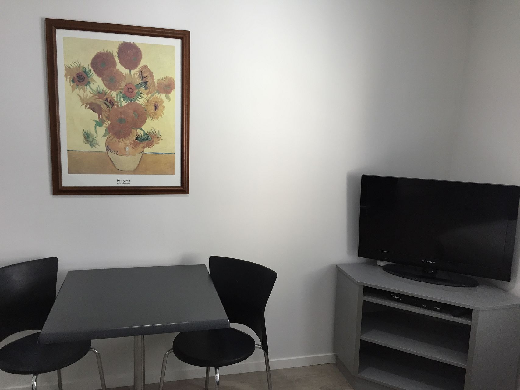 King single bed. TV. Separate bathroom and washing machine/dryer.