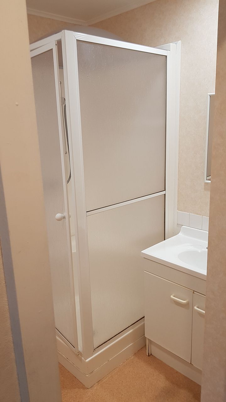 Bathroom with shower and laundry