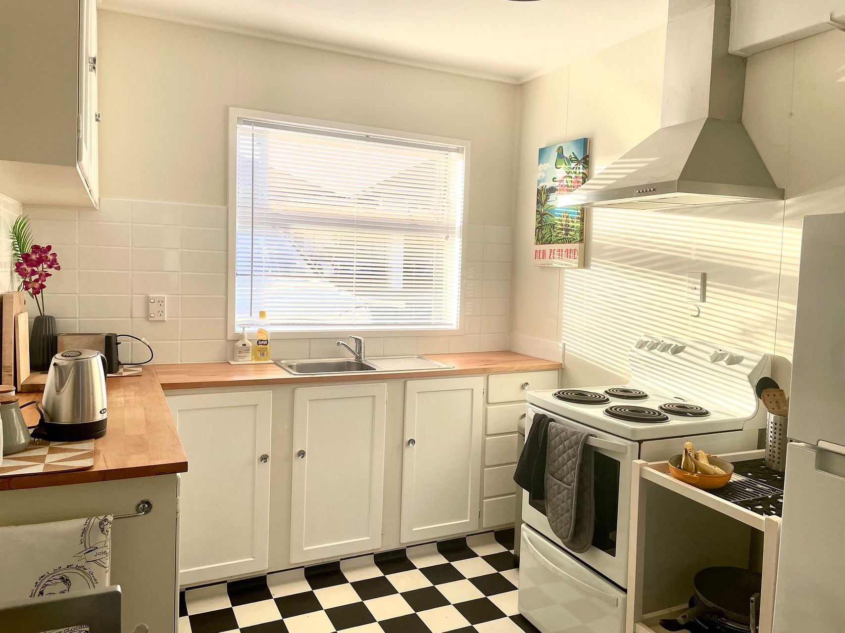 - Well-sized kitchen with space for a small dining table and chairs
