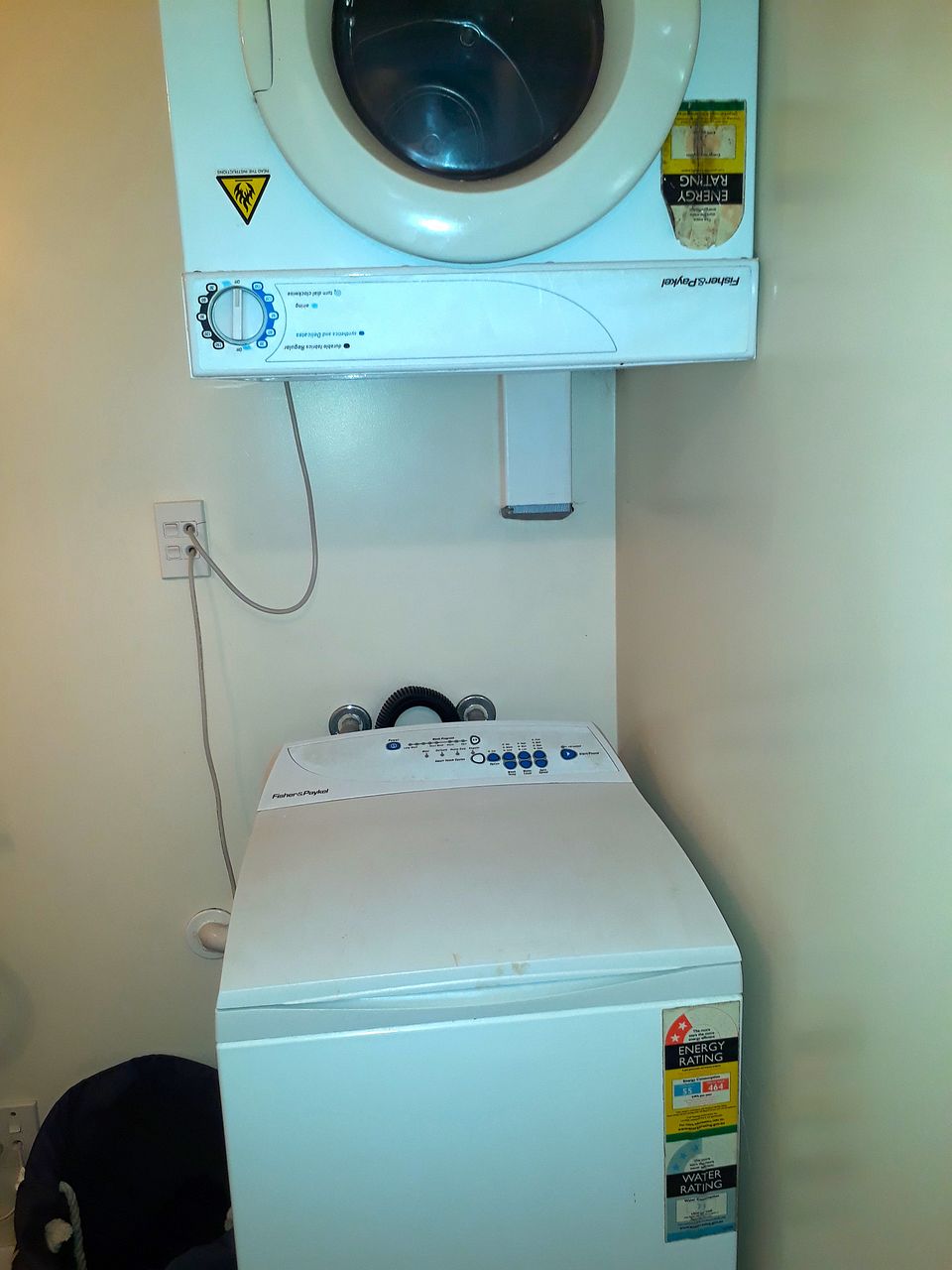 - Includes washing machine and clothes dryer.