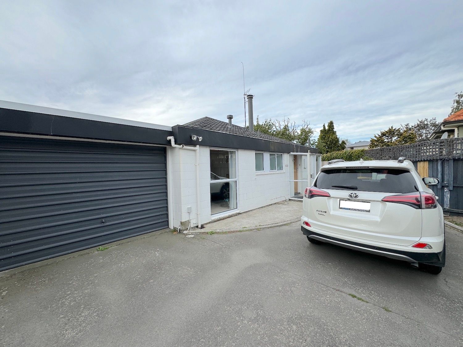 This home is at the rear section, with its garage separating the front dwelling.