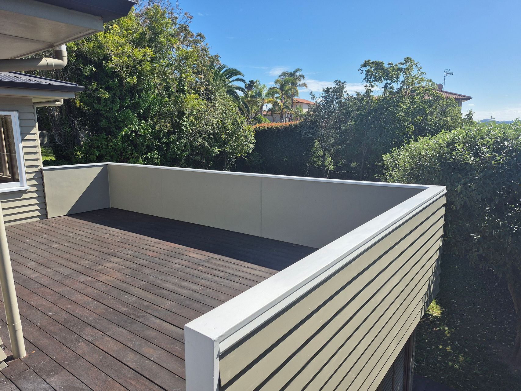 The home has an elevated North facing deck perfect for entertaining which overlooks the backgarden with views across Red Beach. Stairs lead to the back garden & courtyard giving a beautiful setting to relax or for the children to run & play.