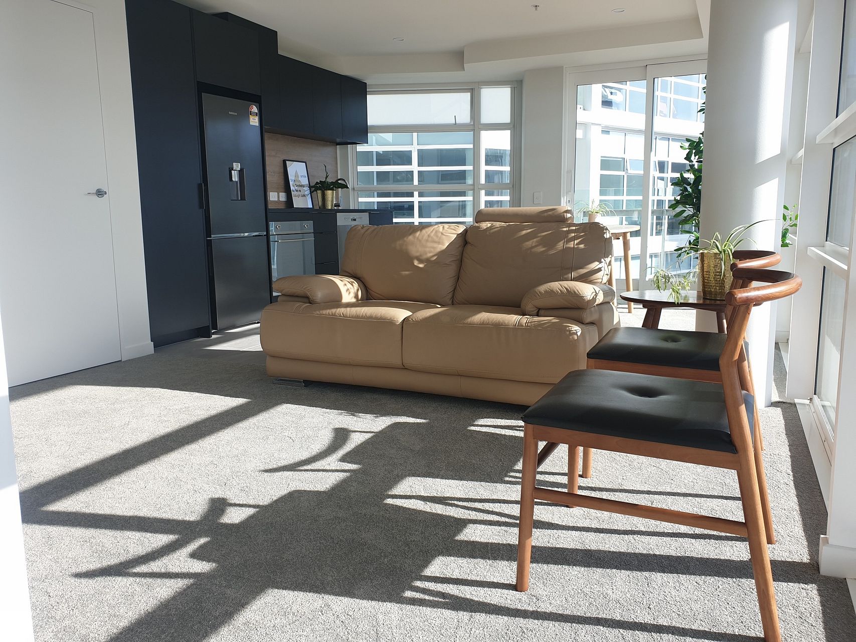 Fully furnished with Samsung fridge/freezer with water dispenser, Samsung combo washer and dryer, Samsung Smart TV, dining table set and sofa, basis kitchen utensils, pots and pan, plates and cutlery and Queen bed with headboard.