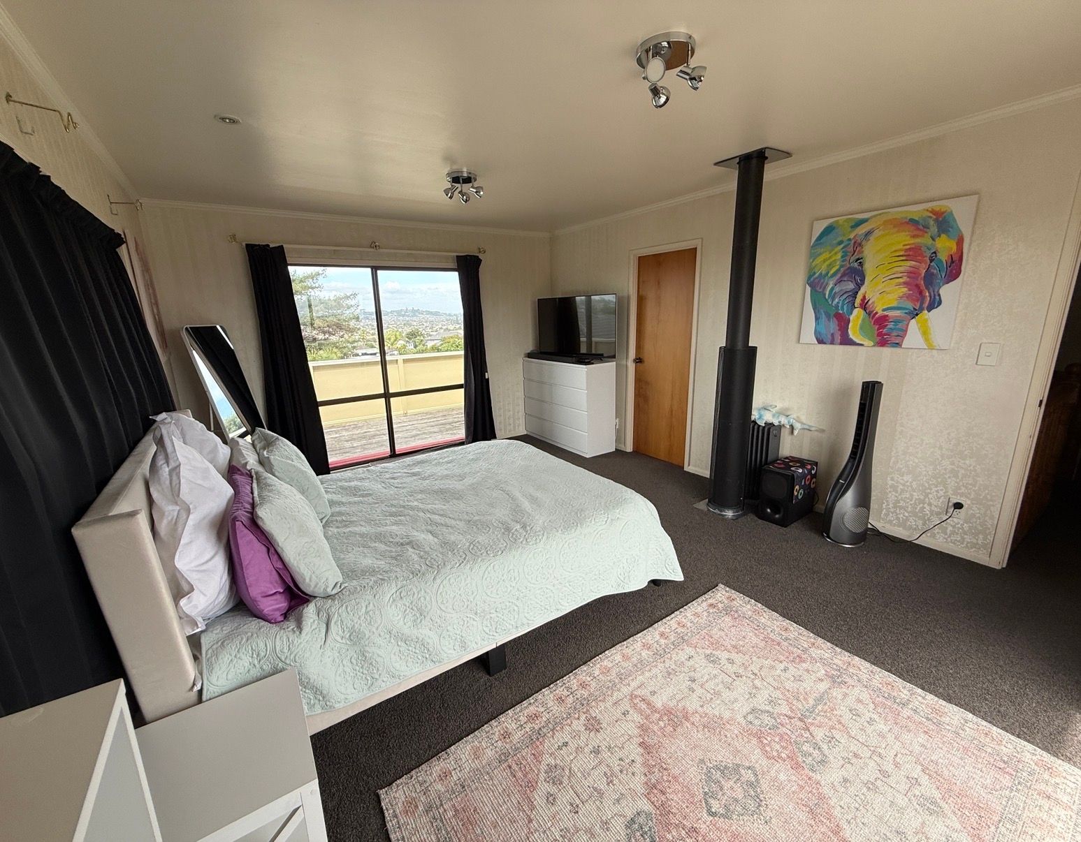 Ideal for either a family who wants lots of space (two living areas, all large rooms and massively beautiful views to Rangitoto:), or for flatmates (large bedrooms) our former family home is warm and gets the sun all day. Modern and immaculate, it has a good size deck out front and two decks from the upstairs master bedroom, with the most stunning 270 degree views, from Sky Tower, out to the Hauraki Gulf, and around to the Hunua's. With a good size fully fenced front yard, we will consider pets. With 2x off street parks behind the house, and located on Bradbury Road, bus stops each direction are just 40 metres away. Shops at the end of the street include a dairy, four different takeaways, hairdressers and a bottle shop :)