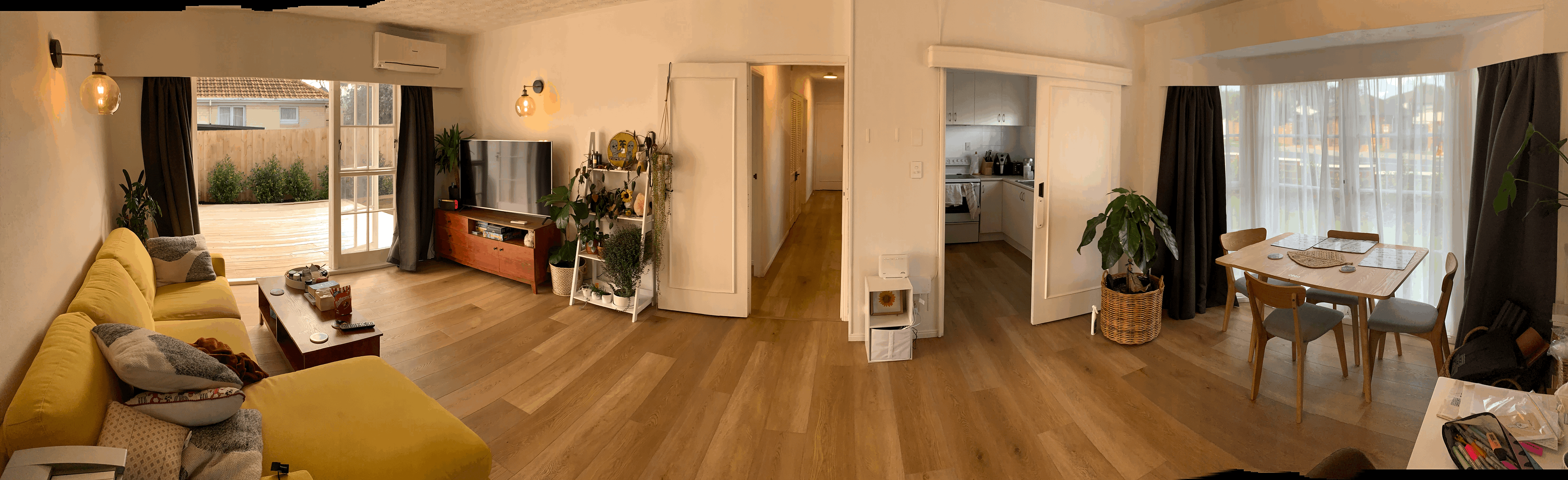 Large living area opens out to large sunny deck and backyard