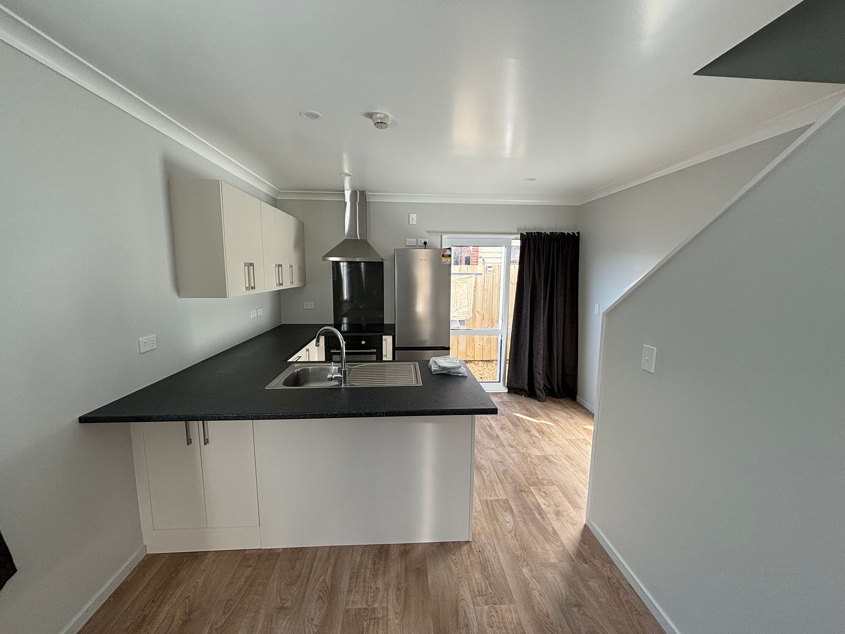 Near new build only 6 months old. Sunny apartment with open plan living and kitchen downstairs with two bedrooms and bathroom with seperate toilet upstairs. This is the sunniest apartment in the block as you can see by the photos and comes with all your appliances.