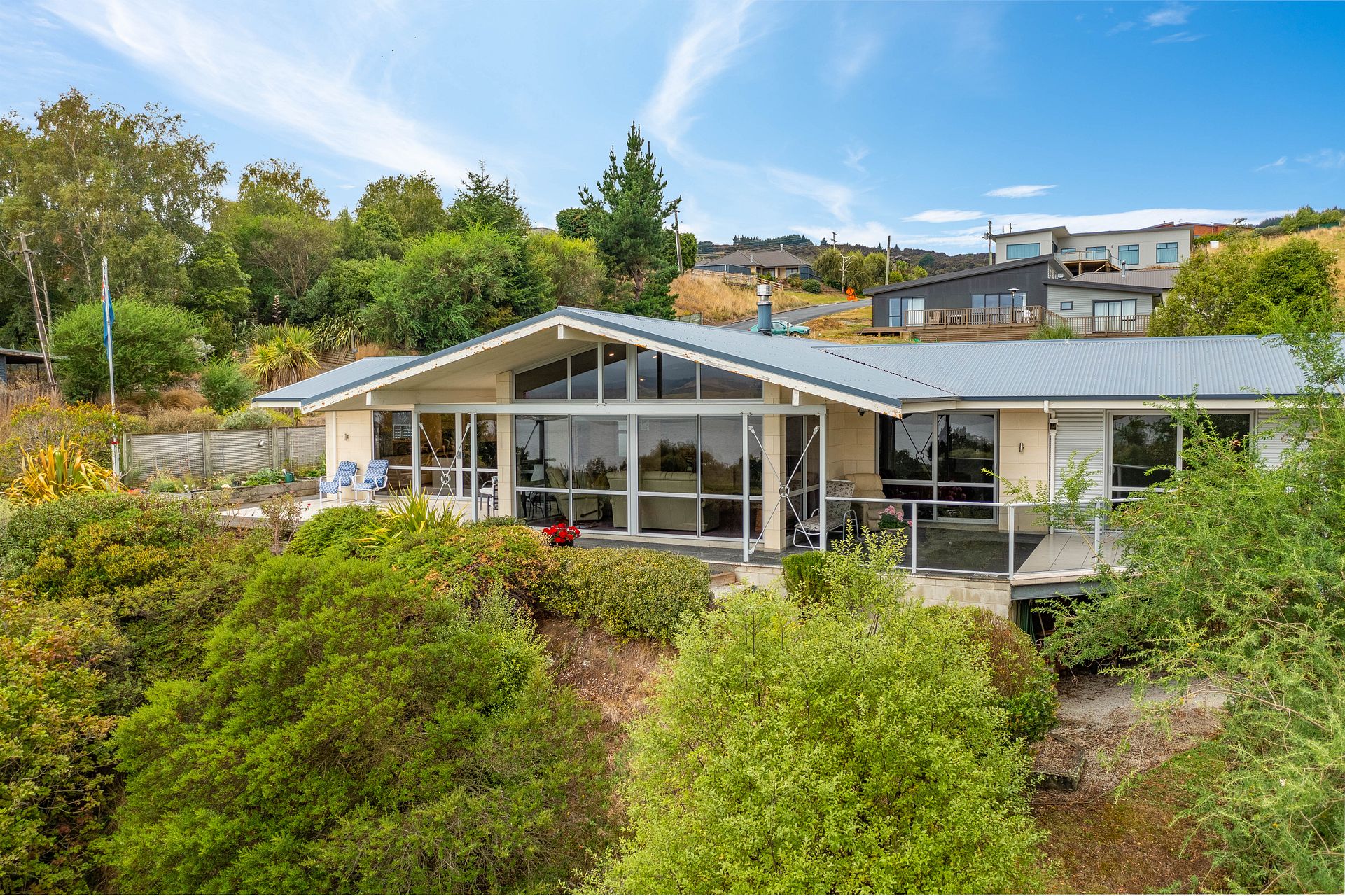 Modern and open plan, double-glazed throughout. Two double bedrooms plus an office allowing opportunity for working from home. A large family bathroom, separate laundry, and internal access double garaging make for easy living. Stunning large kitchen and dining. The home is bathed in sunshine and has great winter heating options, including two heat pumps.