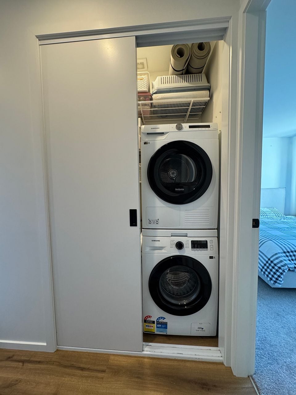 - Separate laundry with near new Samsung washing machine and dryer.