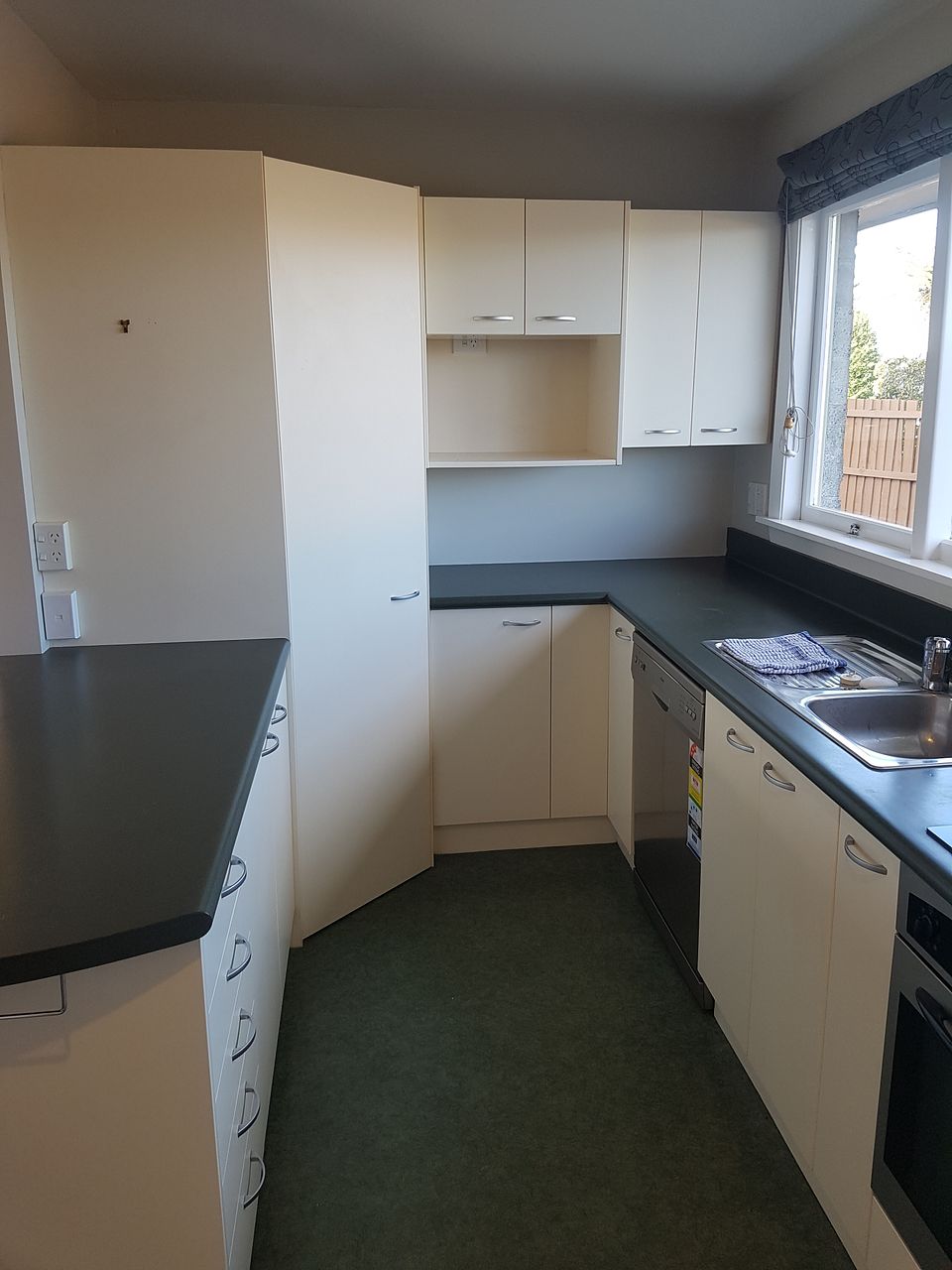 Kitchen has ceramic hob, oven and dishwasher
