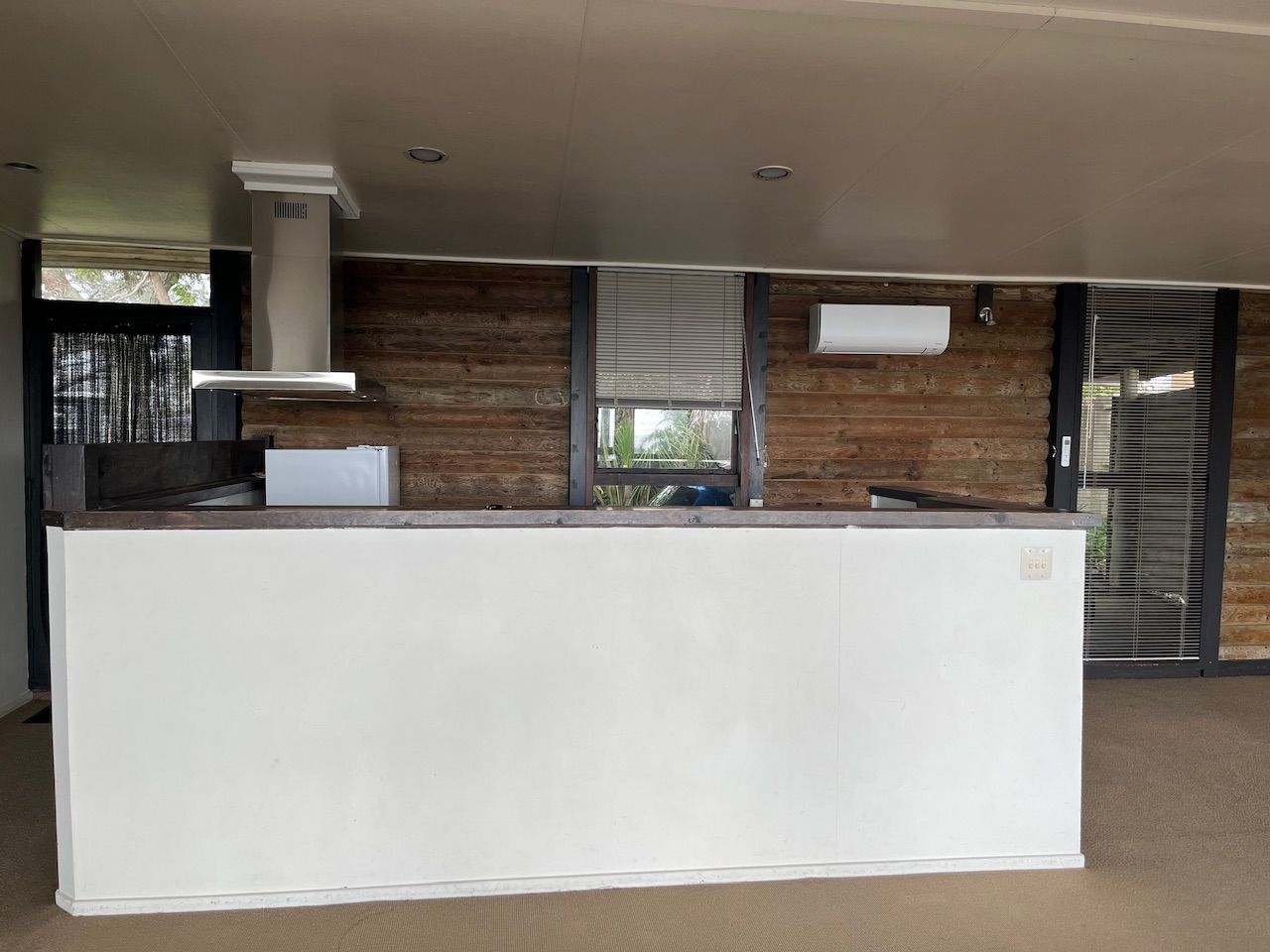The late 1970’s log cabin house has a modern open plan living area, amazing sea views and is a short walk from the beach. The spacious seaside deck provides a perfect spot for outdoor entertainment.