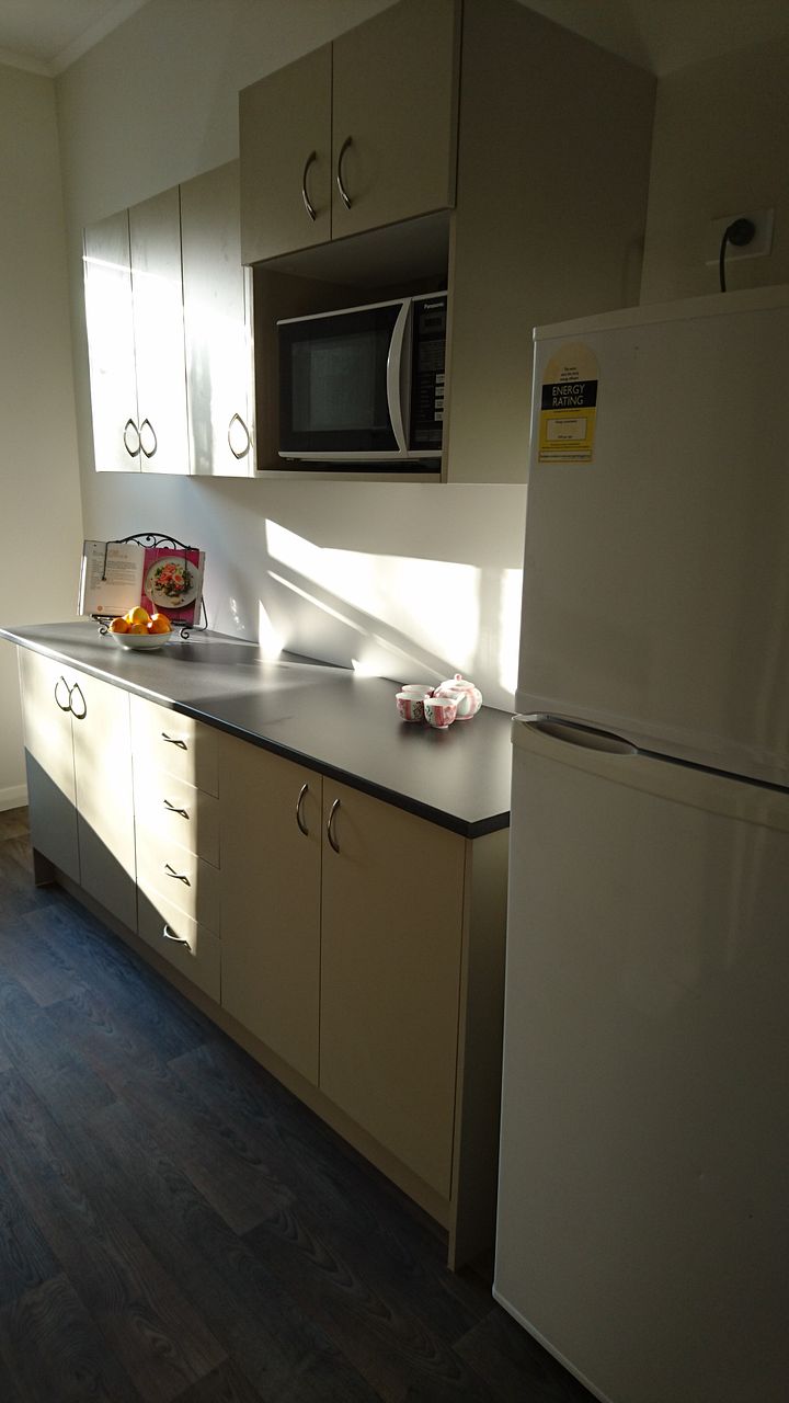* Separate kitchen with oven, electric hobs, fridge/freezer, microwave