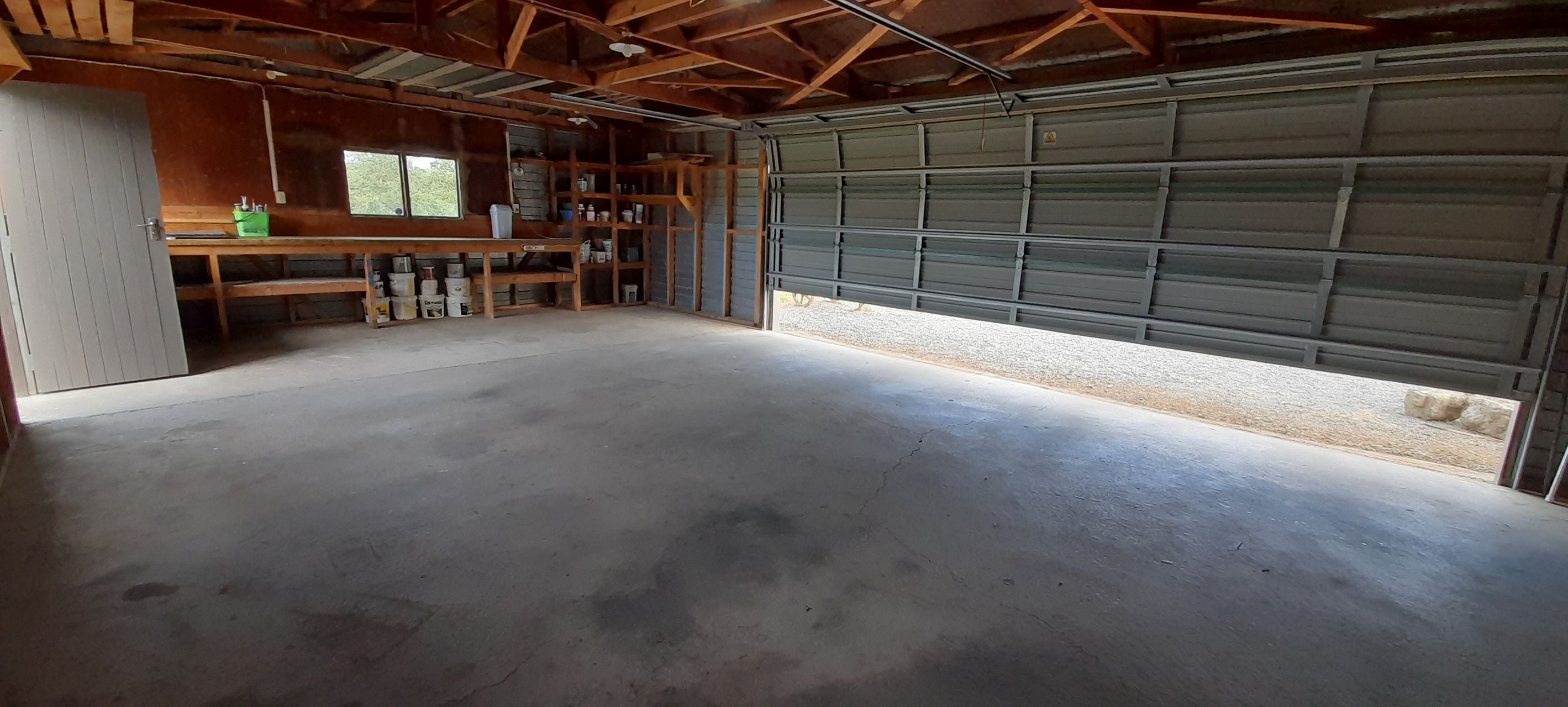 3 car garage and work bench.