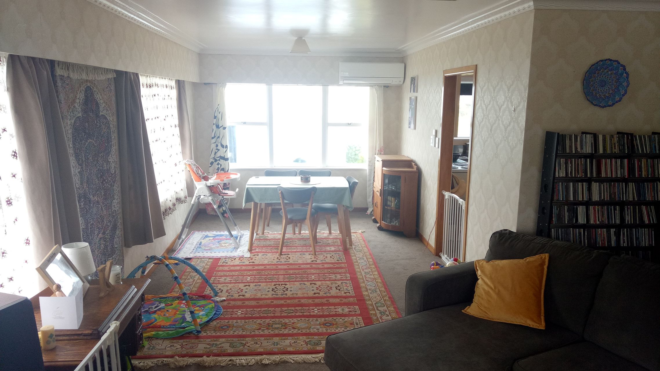 Large lounge and dining room, with heat pump and log burner.