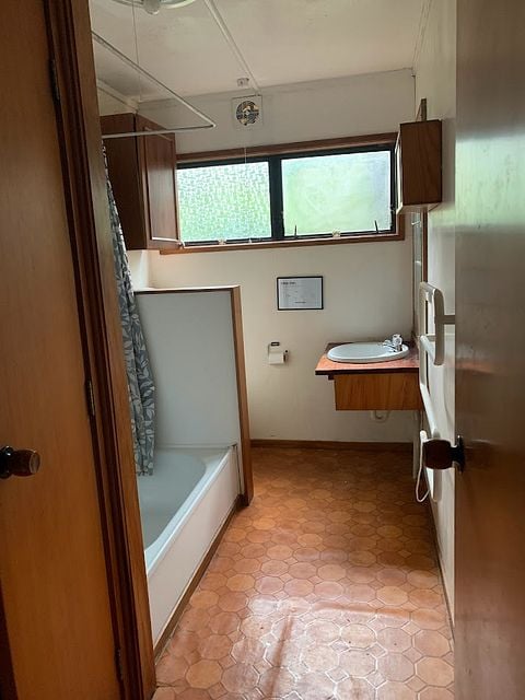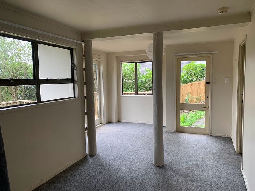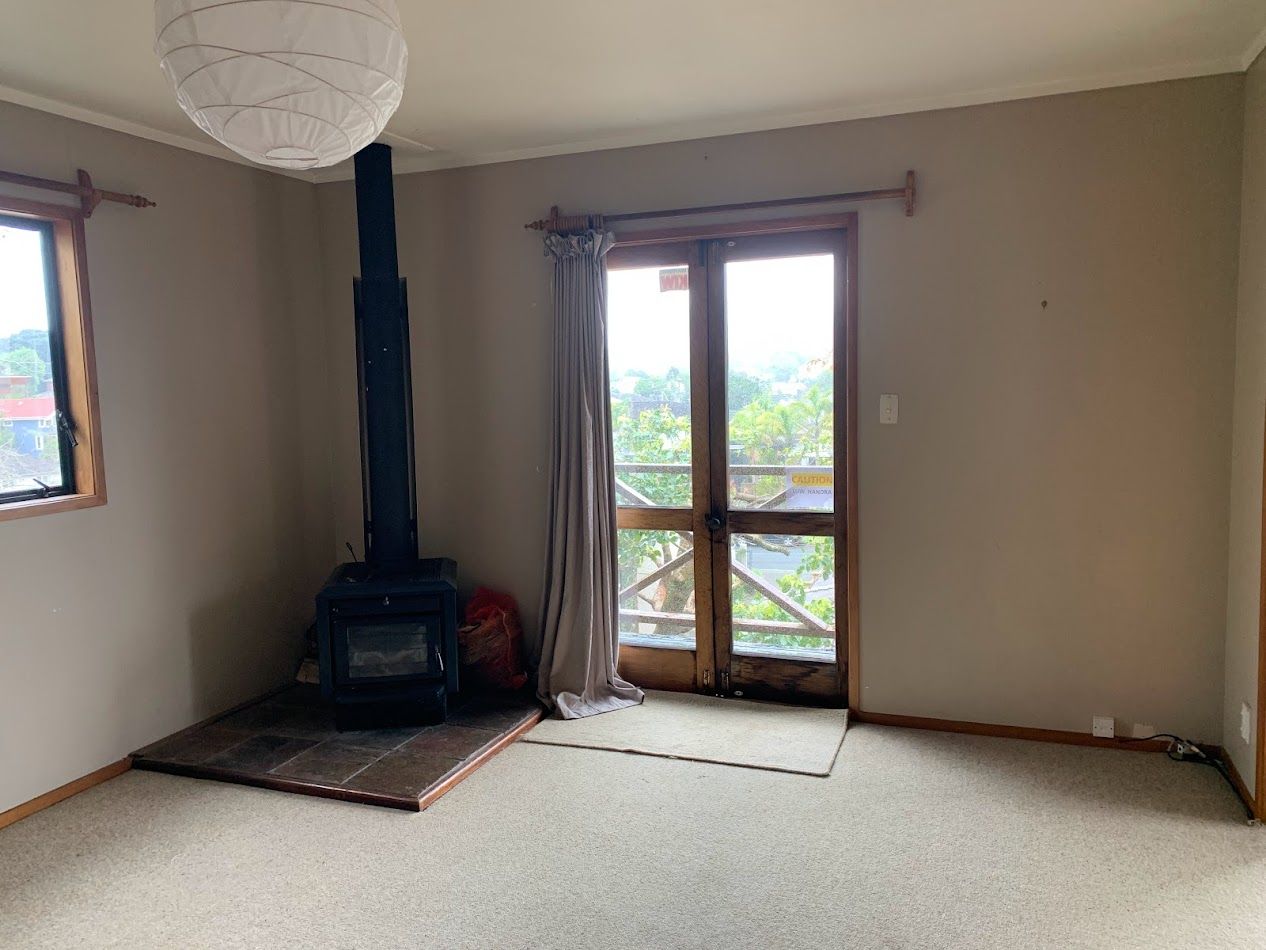 Sunny, warm 5 bedroom home looking out to Mt Eden; 2 bedrooms on main floor with kitchen, dining and living room (pot belly stove), 2 bedrooms upstairs and one bedsit on the ground floor, with small bathroom and separate entrance. Older house but homely. Kitchen views to Mt St John. Double Grammar zone, handy access to bus stops. Unfurnished. (Backs on to a busy road with no fence.)