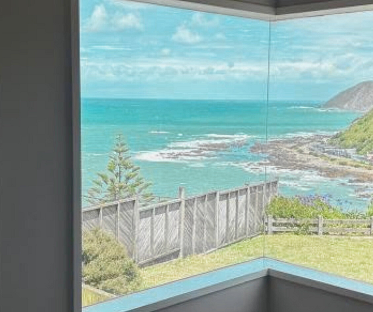 Inside, the home features a large, comfortable lounge with chapel ceiling, gas heating, surround-sound wiring, and expansive views across Owhiro Bay, Cook Strait, and the Kaikoura Ranges, with late-afternoon sun and memorable sunsets. The modernised, north-facing open-plan kitchen is bright and well laid out, making everyday living and entertaining easy.