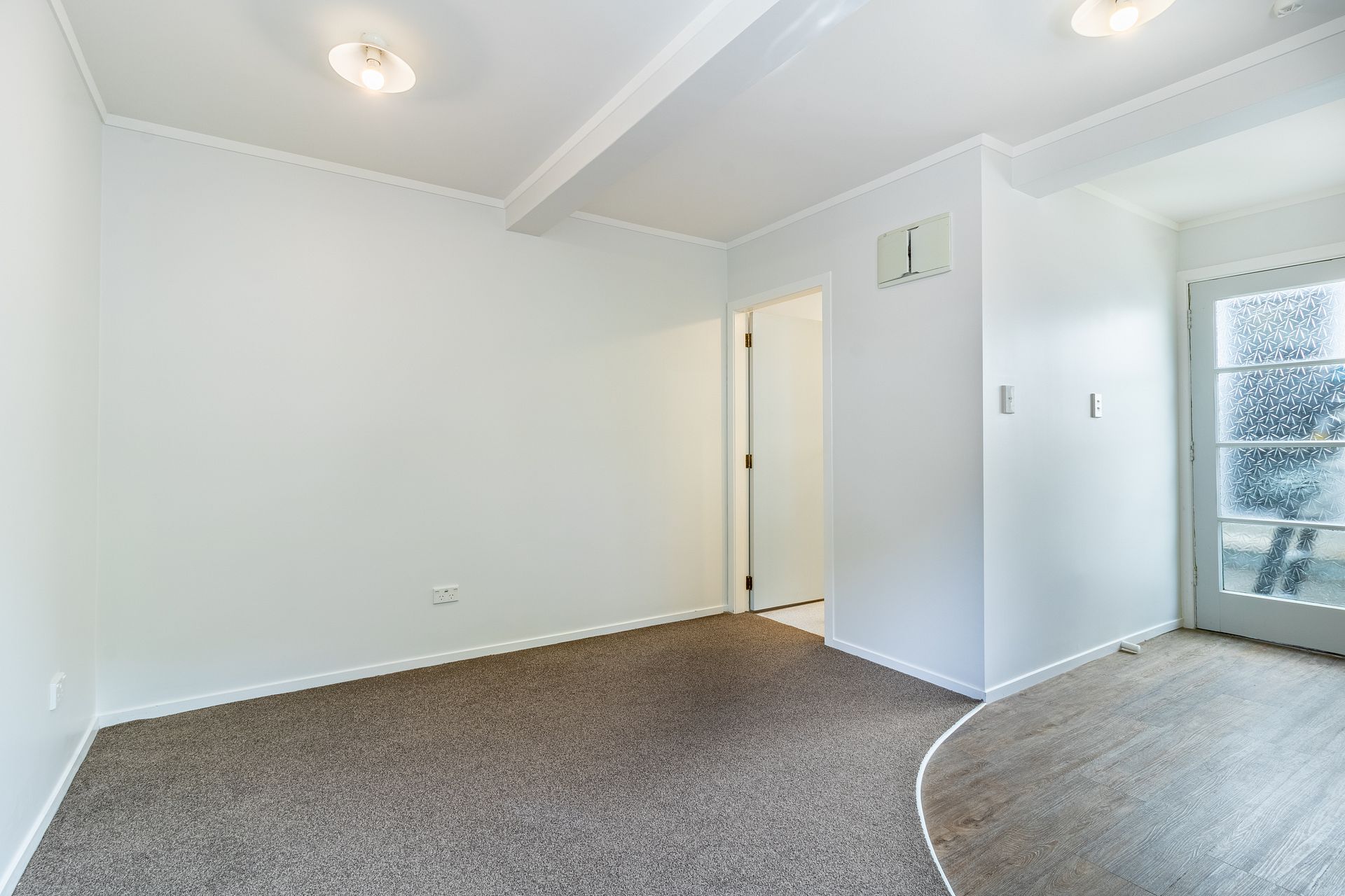 - A light-filled living room. A brand new heat pump has been installed for additional warmth.