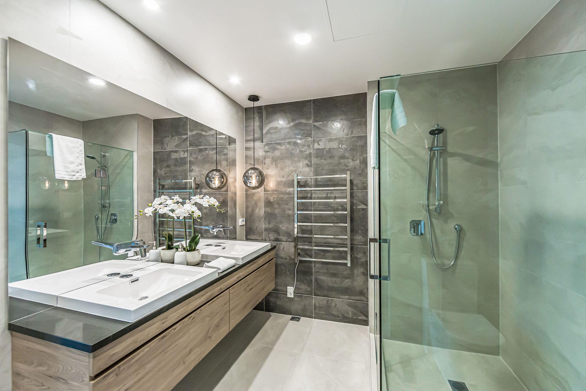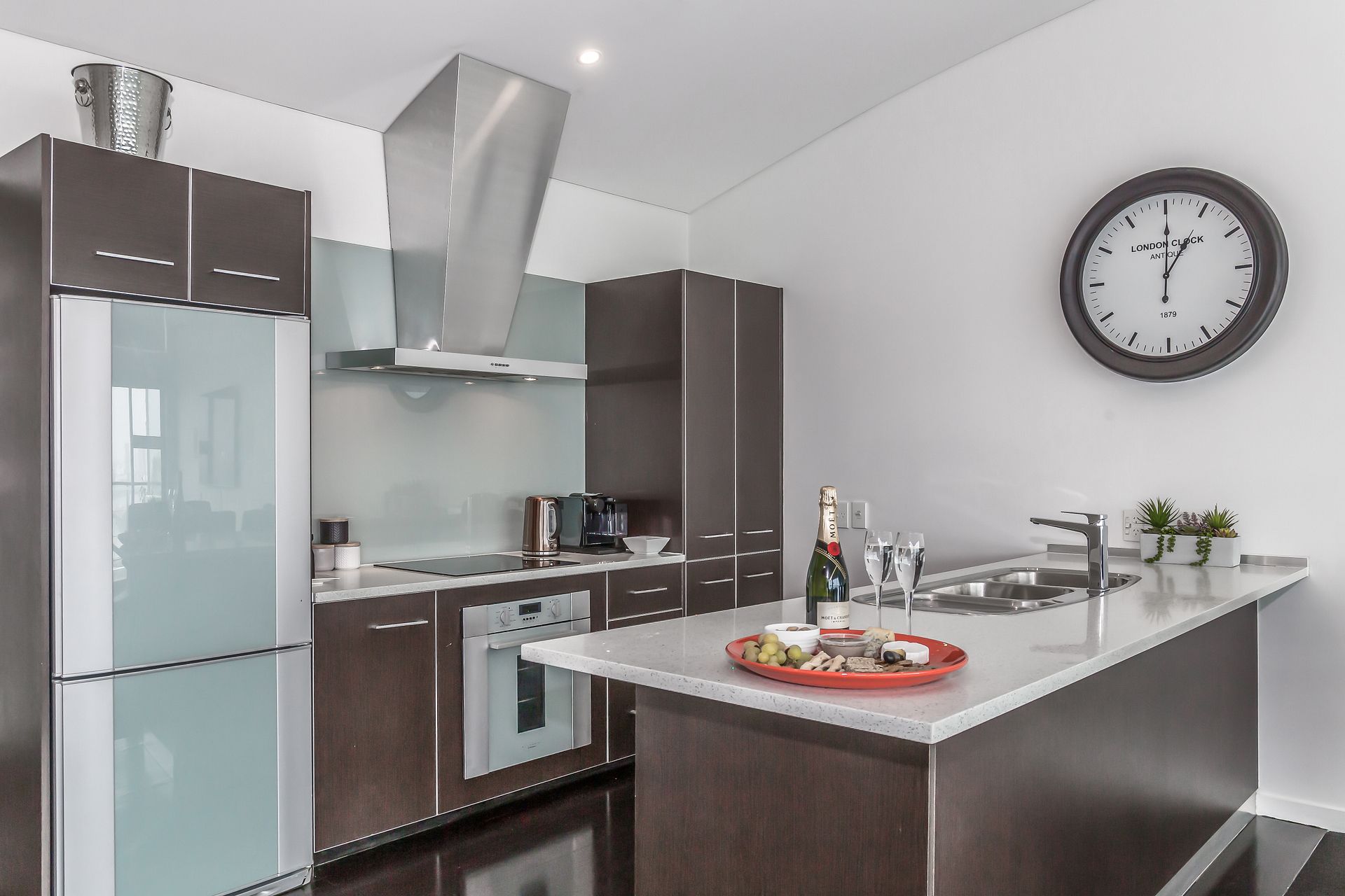 This glamorous apartment comes with 3 bedrooms each with Super King beds. The main master bedroom upstairs has an ensuite while the luxury bedrooms downstairs share the main bathroom. The apartment has FREE WIFI, a Smart TV, and a Nespresso coffee maker. The modern kitchen is fully equipped with an oven, cooktop, microwave, dishwasher, 4 slice toaster, rice cooker, and everything else you’ll need. There is a washer and dryer (as well as a hairdryer) in the main bathroom downstairs.